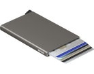 The Cardprotector is the heart of our collection and our most minimal wallet. The patented mechanism allows you to slide out your cards with one simple motion, ready for immediate use. The aluminium casing protects from bending, breaking and unwanted wireless communication.