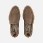 Sporty loafers in suede, with Hogan monogram stamped on the front and milleraies extra-light outsole. Soft and fresh, thanks to the linen lining, they are the perfect complement to a business casual look.