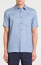 Theory Irving Short Sleeve Shirt in Relaxed Linen - Rainstorm