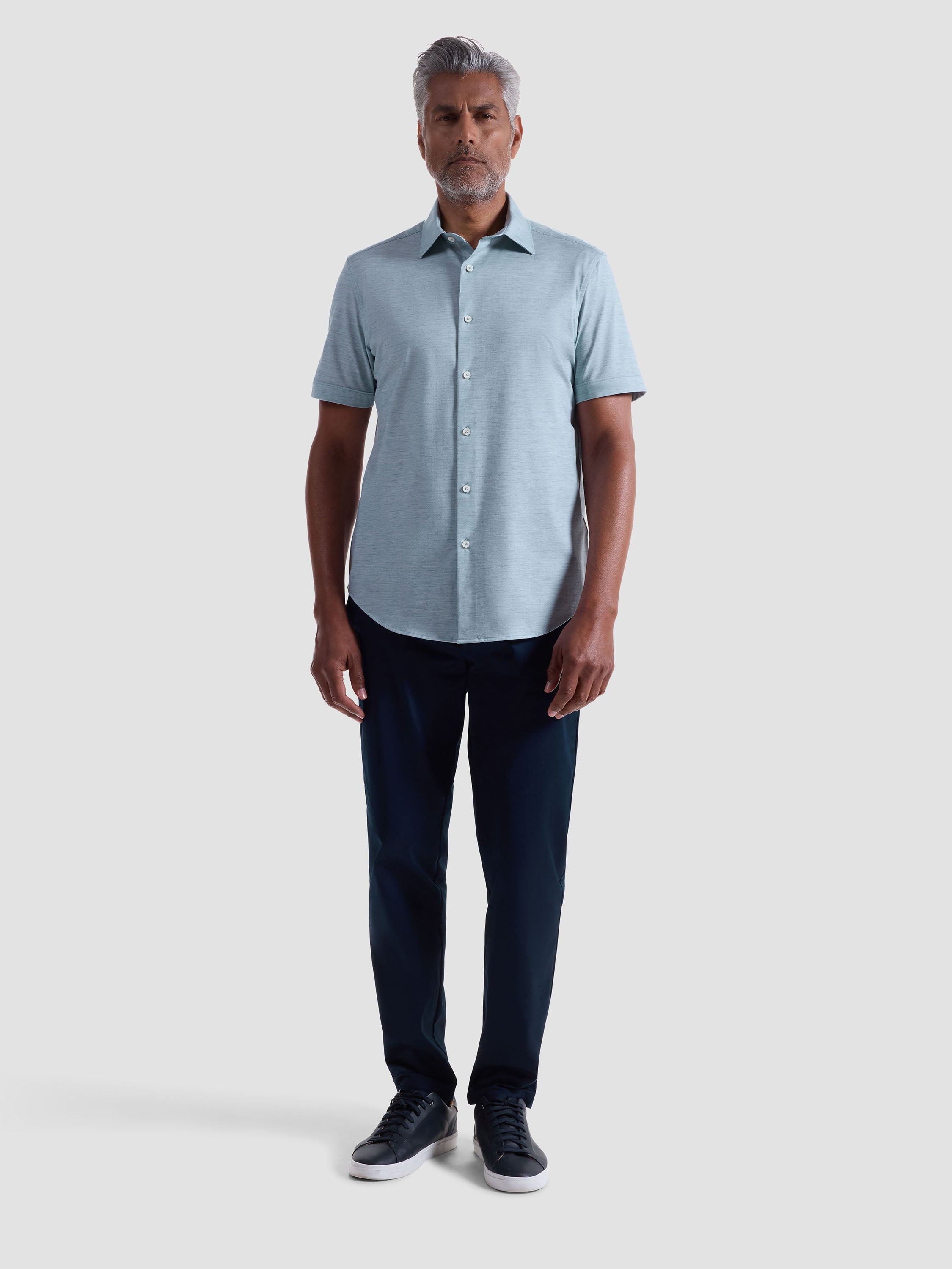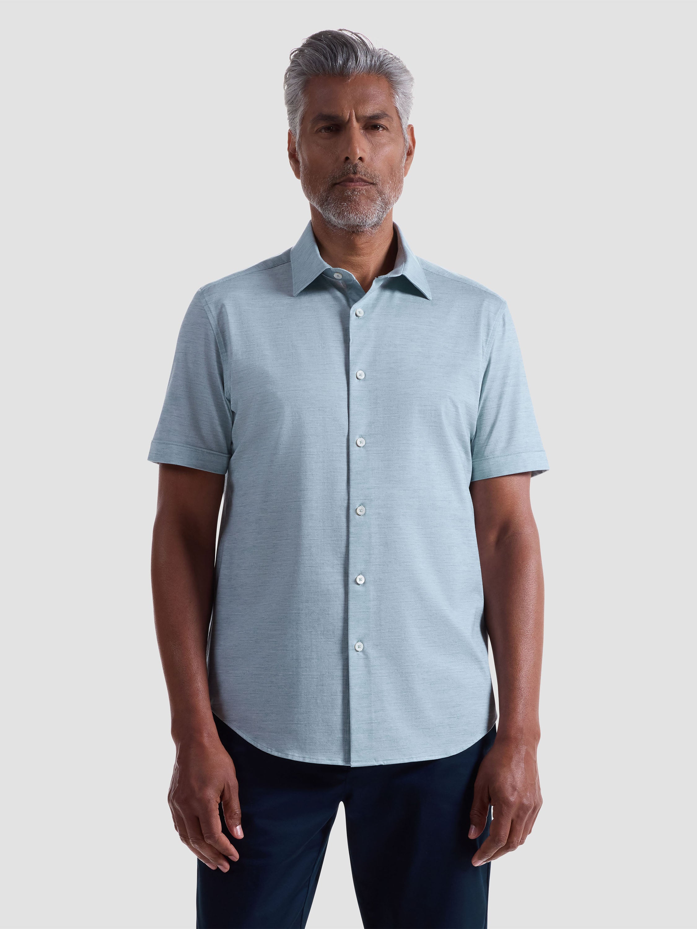 The Miles OoohCotton® short-sleeve shirt features a point collar, mother-of-pearl buttons, and a curved hem for a sleek tucked or untucked look. OoohCotton® is a performance, double-mercerized, wrinkle-resistant, breathable, and easy-care cotton blend with 8-way stretch, quick-dry, and thermal comfort properties.