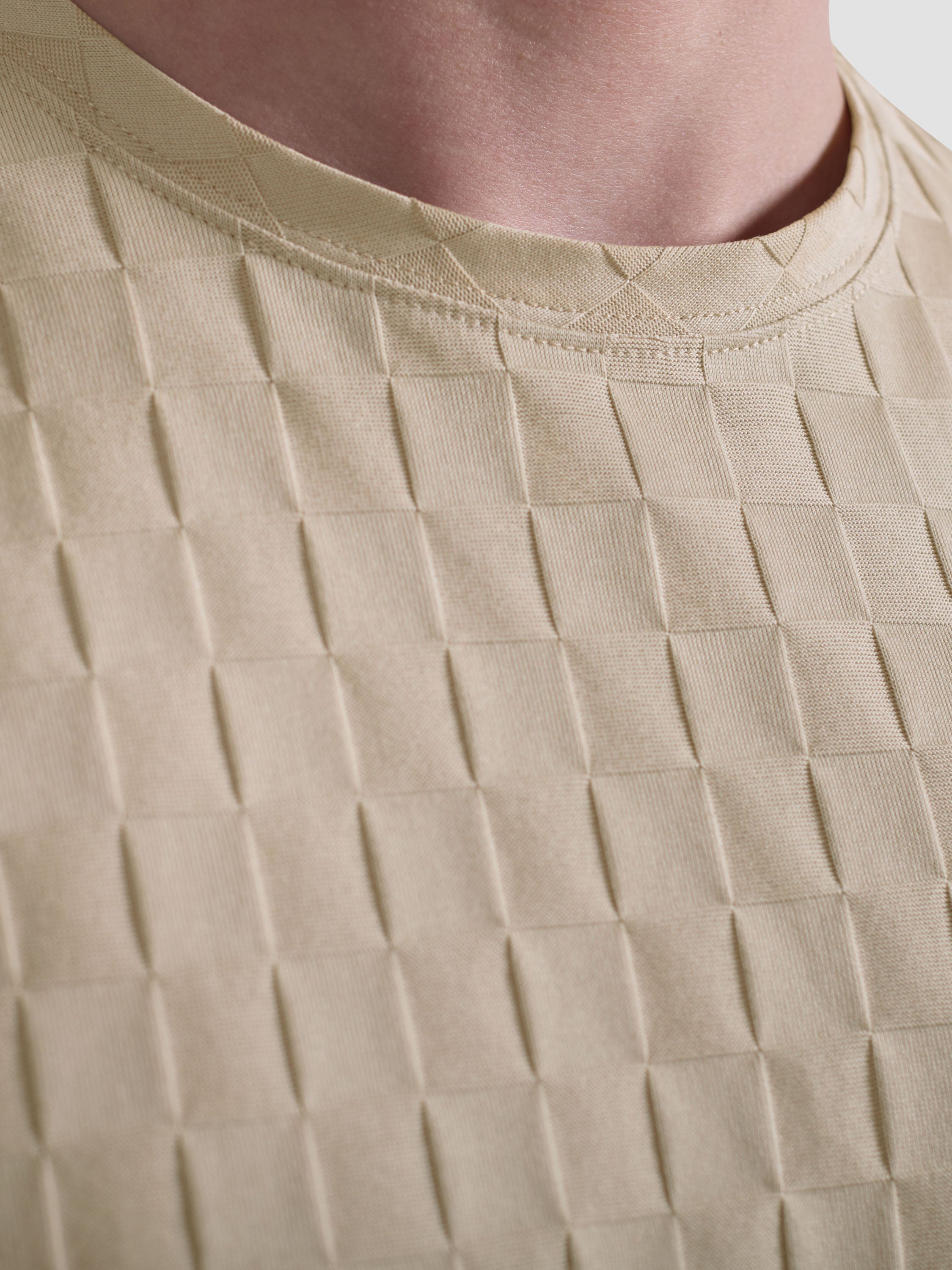 Crafted from 100% premium cotton, this short-sleeve T-shirt features an all-over tonal checkerboard knit for a refined take on casual wear. Lightweight, breathable, and ultra-soft, it's finished with a classic crewneck and clean hems, offering elevated texture in a comfortable everyday silhouette.