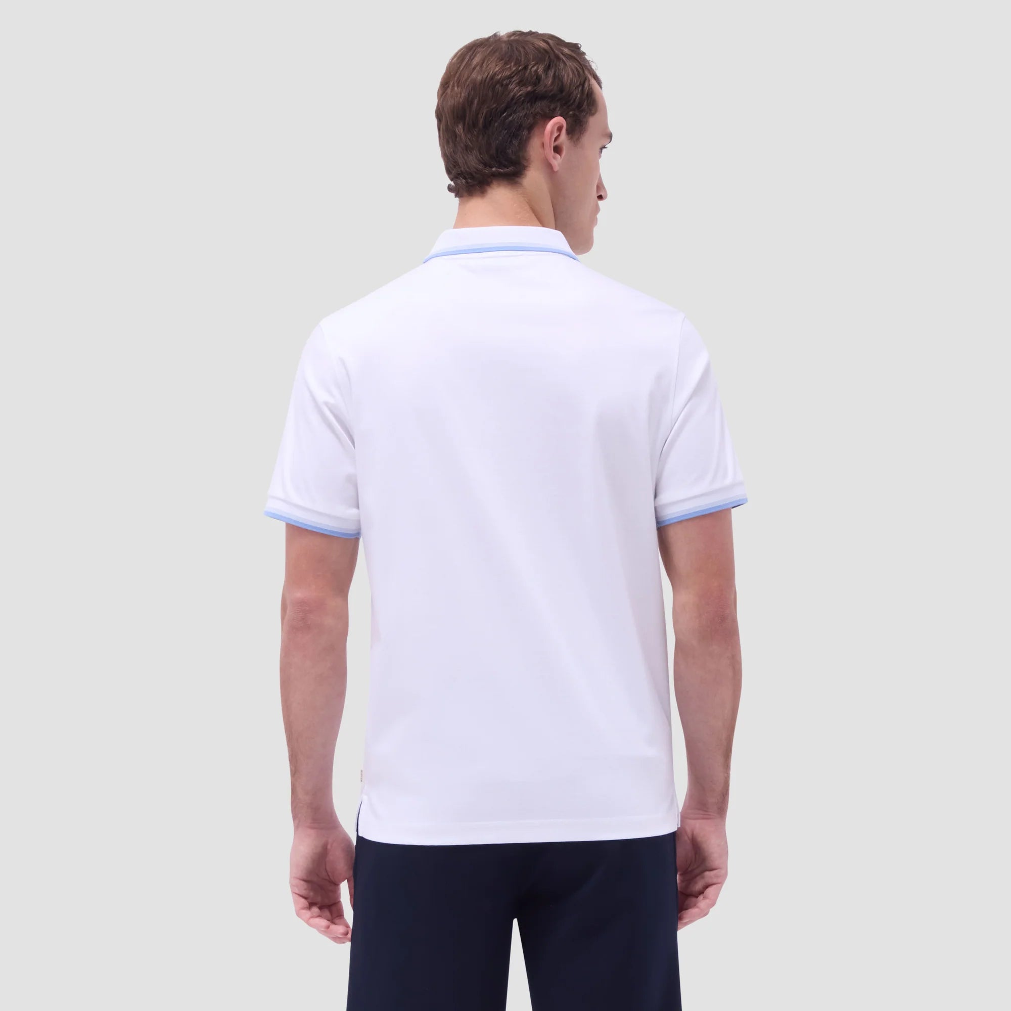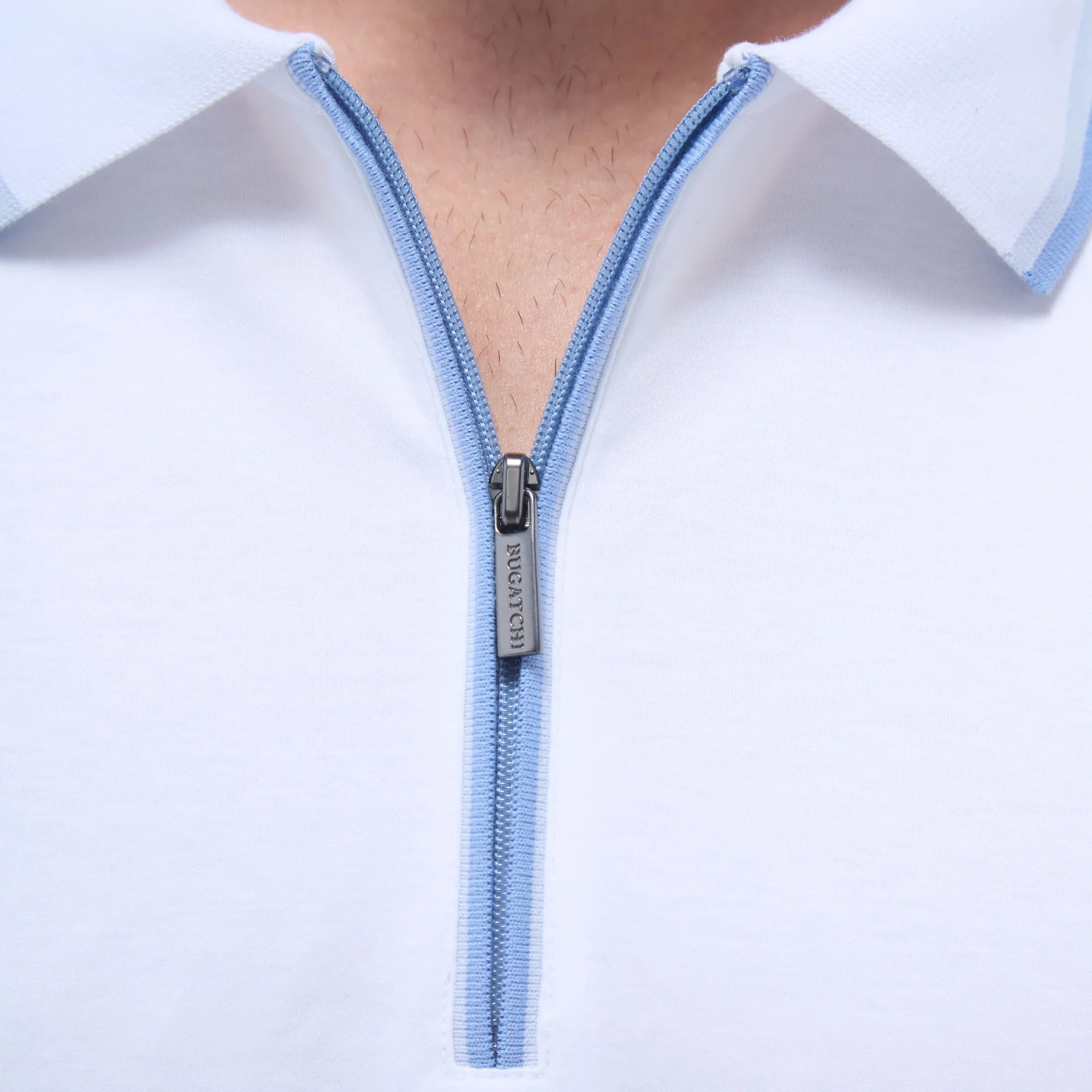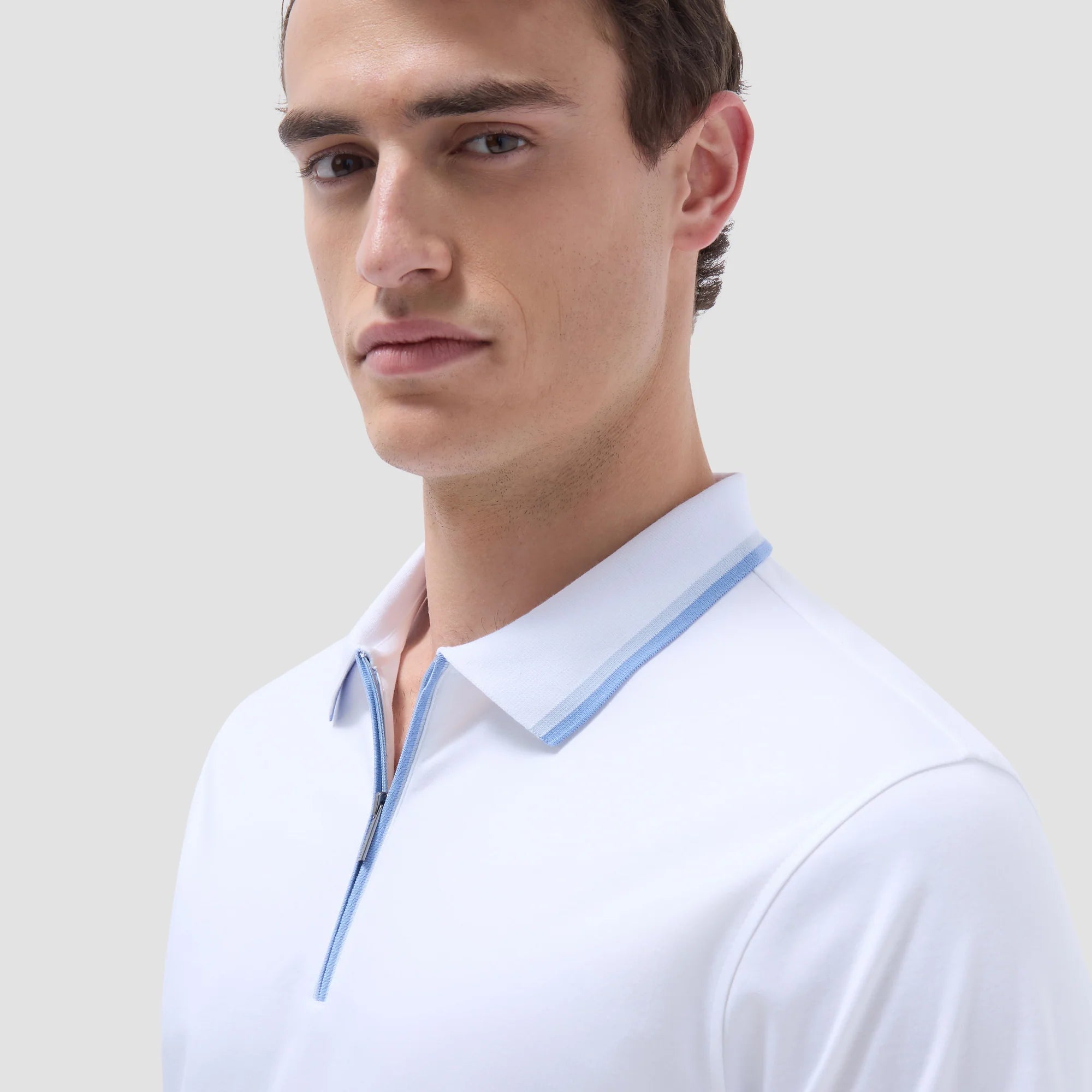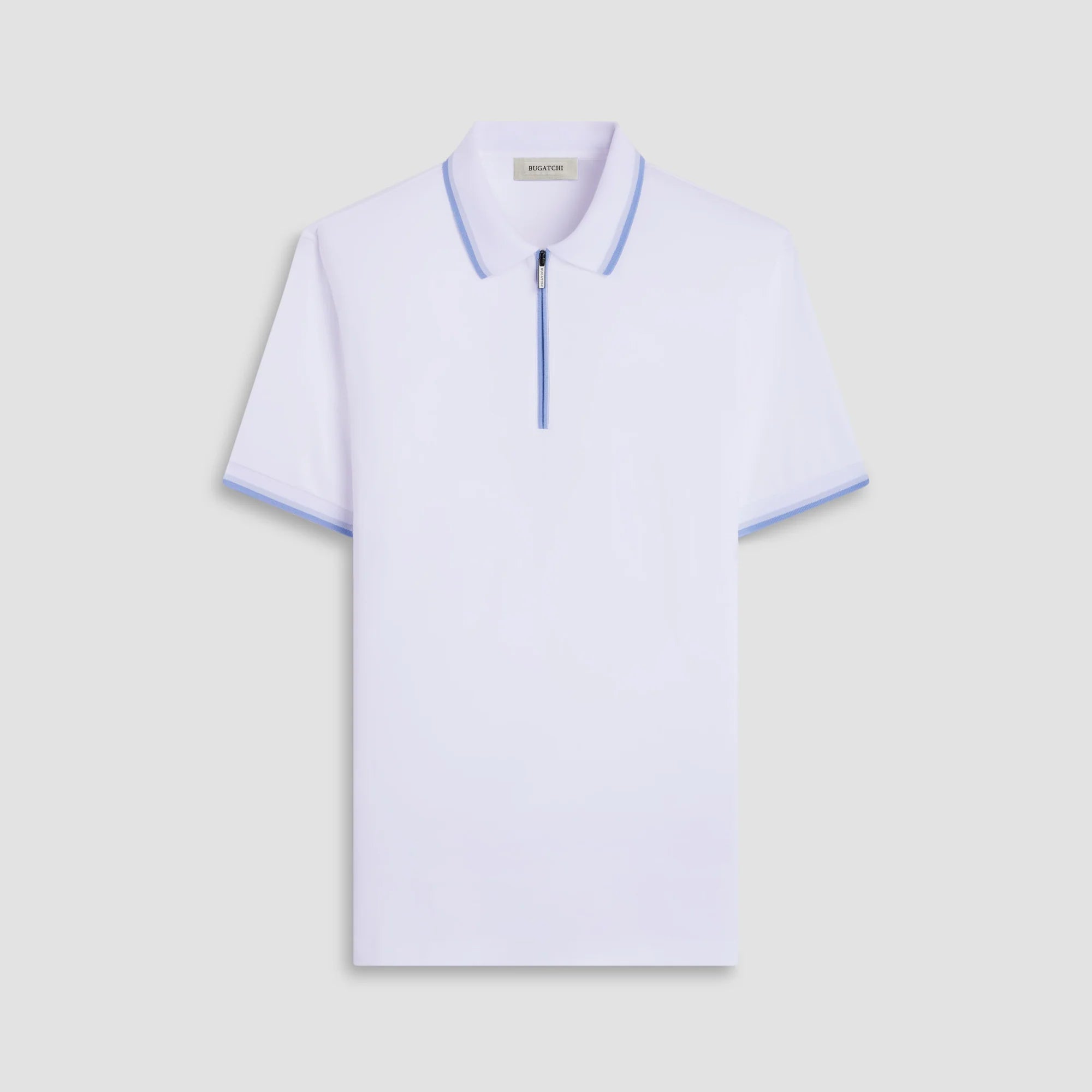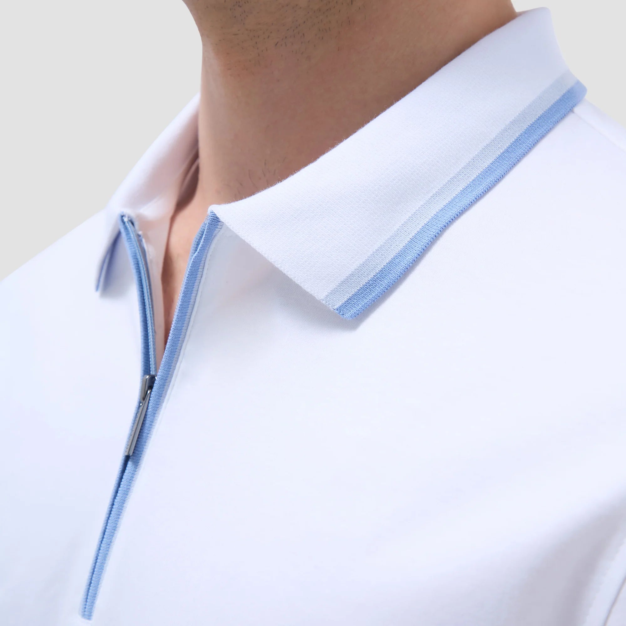 This solid short-sleeve polo shirt, made from 100% Pima cotton, offers an ultra soft, breathable feel. It features a sleek quarter-zip closure, and solid rib collar and cuffs with double stripe detail. With side vents for comfort and mobility, this polo ensures a relaxed fit whether you are at the golf club or enjoying a casual day out. Its elegant design combines style and functionality, making it a versatile addition to your wardrobe for any occasion.