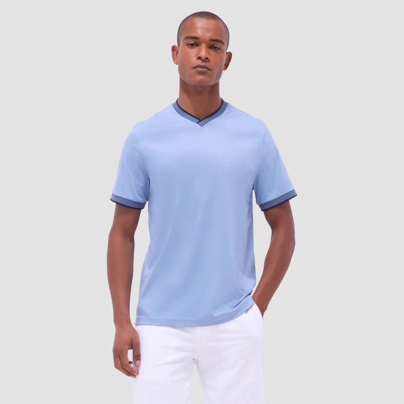 Bugatchi Solid V-Neck T-Shirt - Air Blue