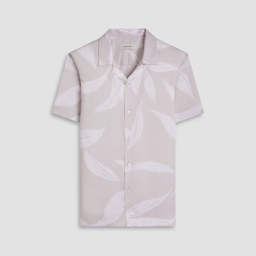 Bugatchi Jackson Leaf Print Short Sleeve Camp Shirt - Almond