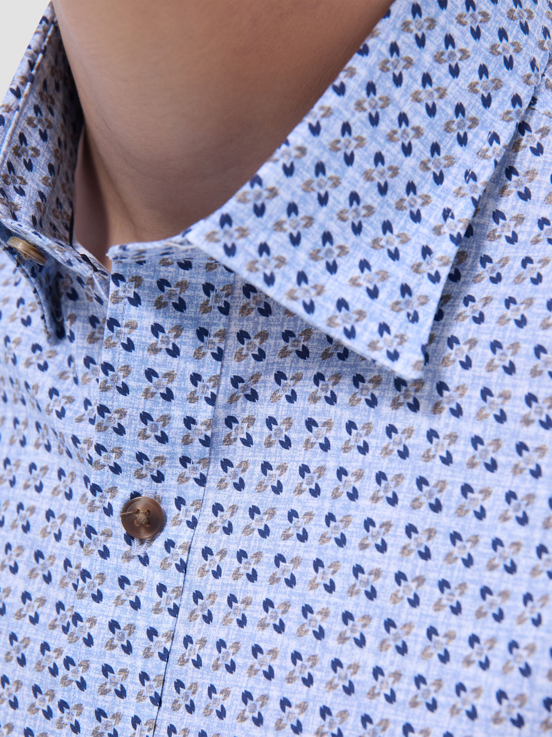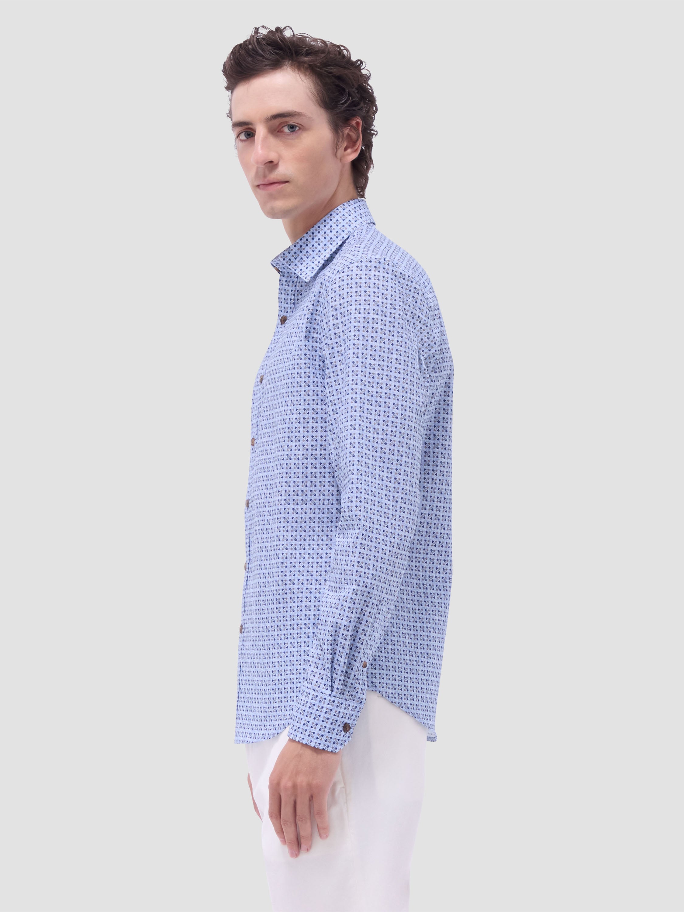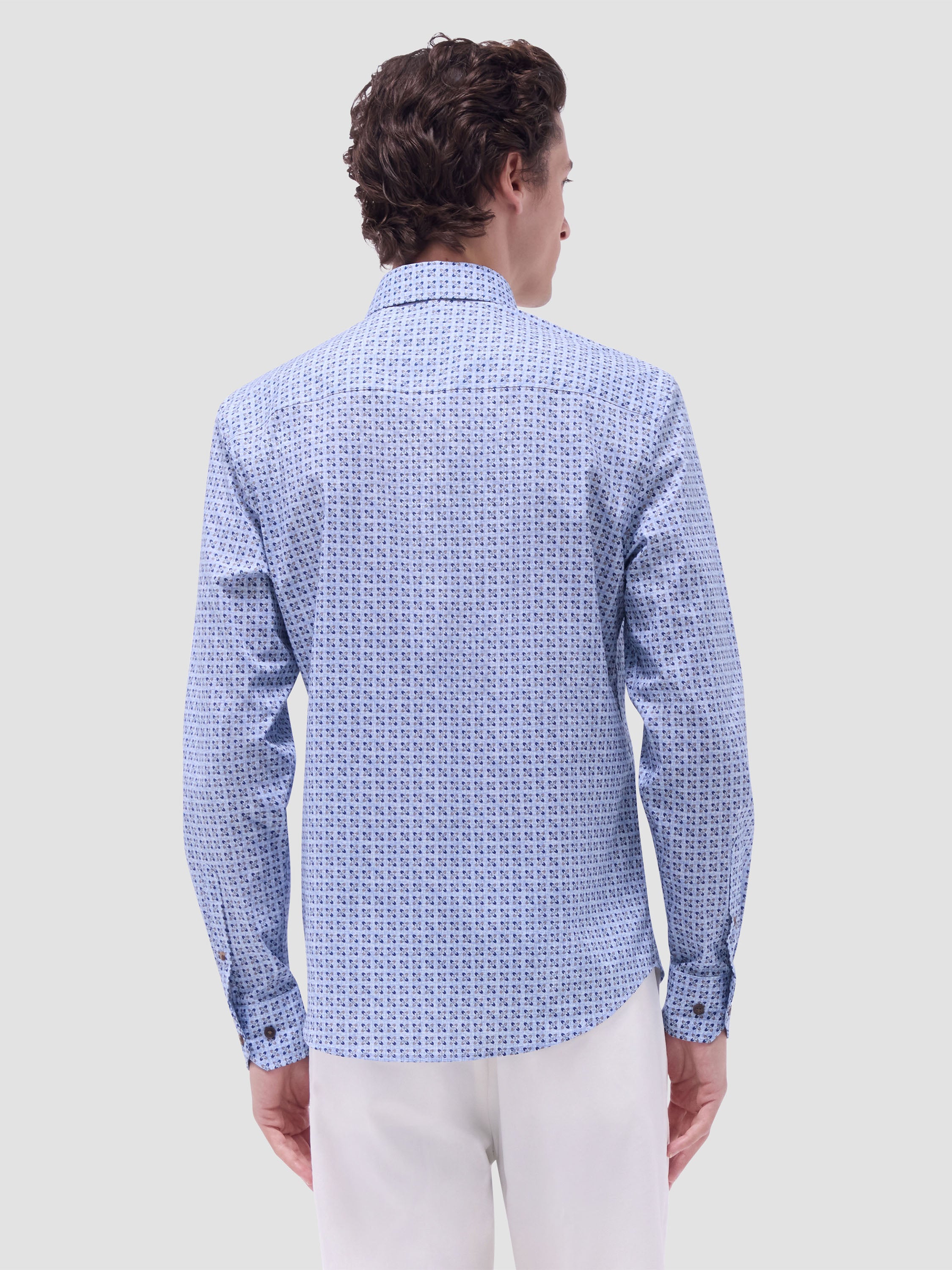 The Karl shirt in COMFORT STRETCH cotton is a contemporary and versatile shirt with optimal comfort and freedom of movement properties. Its timeless and sleek silhouette features long sleeves, a hidden button down collar, adjustable notched cuffs, a curved hem, and a timeless mini check pattern. Wear it tucked or untucked with chinos or trousers for a smart-casual vibe, or with jeans for a relaxed look.
