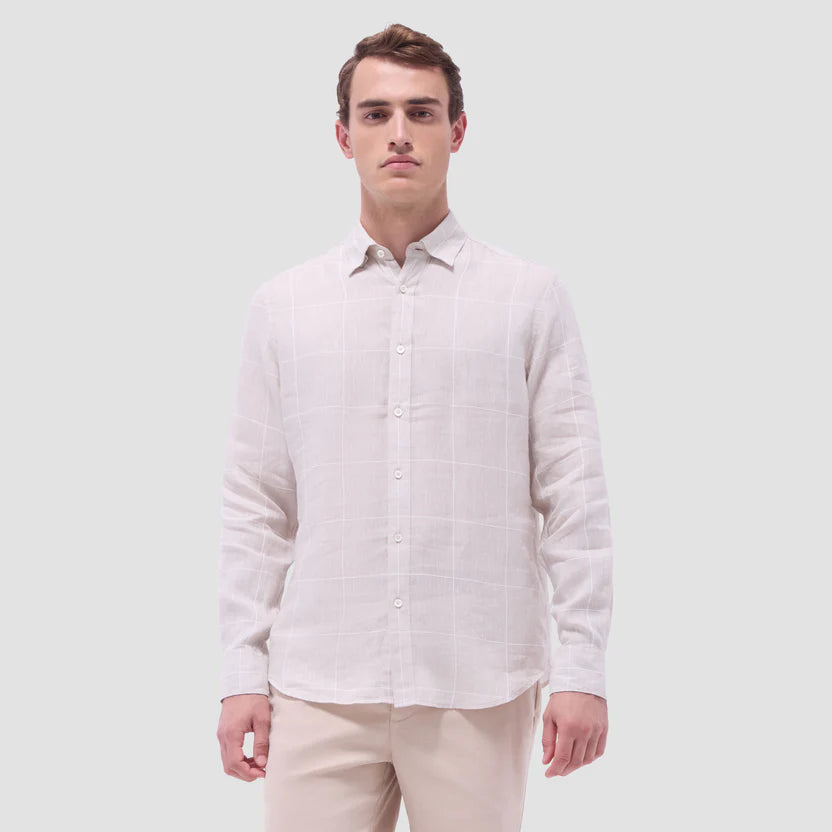 Bugatchi Karl Windowpane Long-Sleeve Shirt - Sand