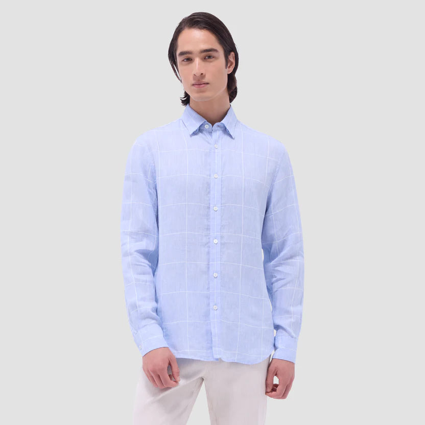 Bugatchi Karl Windowpane Long-Sleeve Shirt - Sky