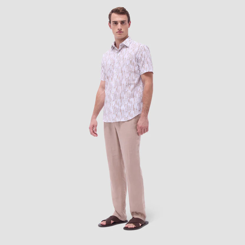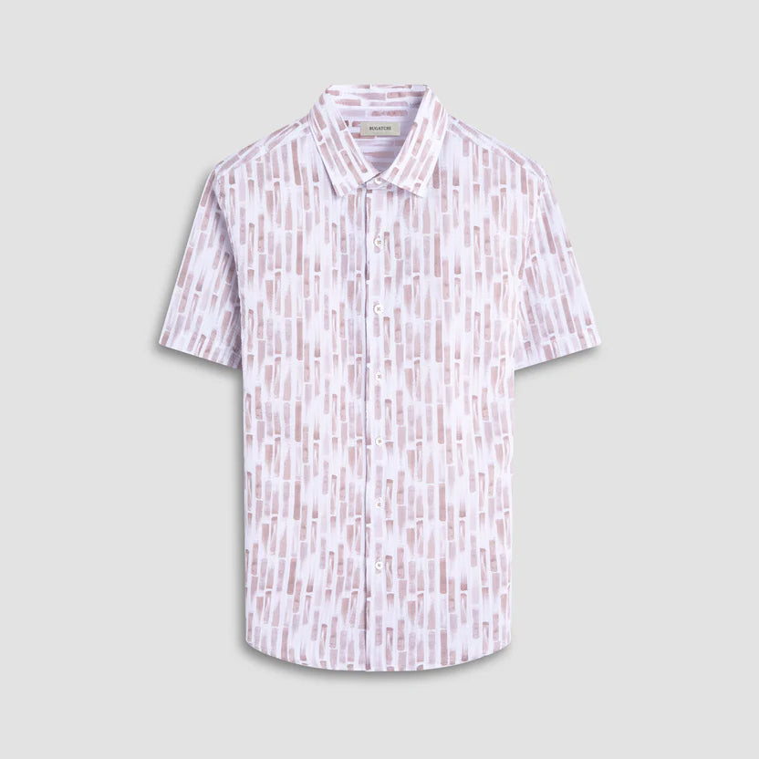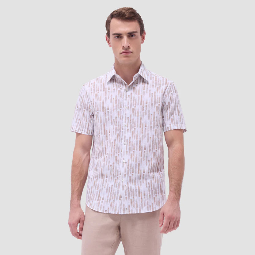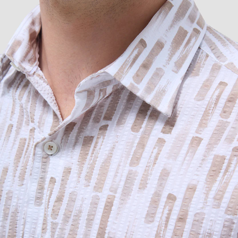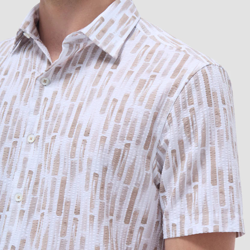 Bugatchi Orson Abstract Seersucker Short Sleeve Shirt - Camel