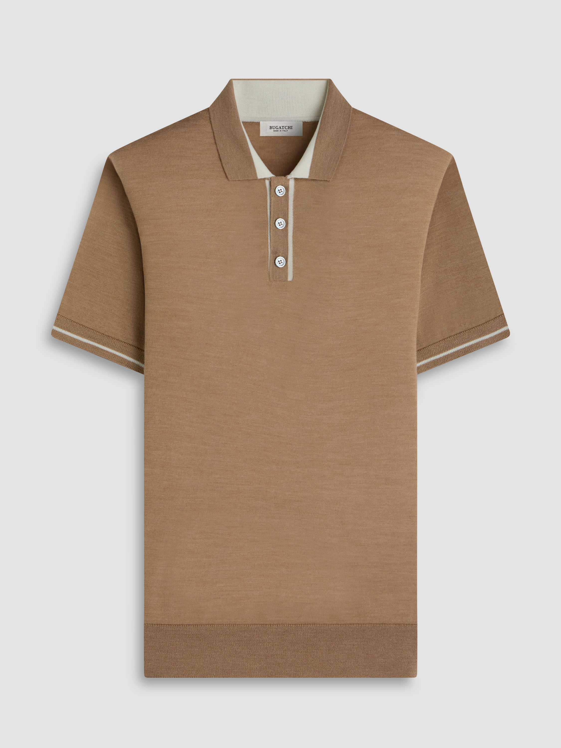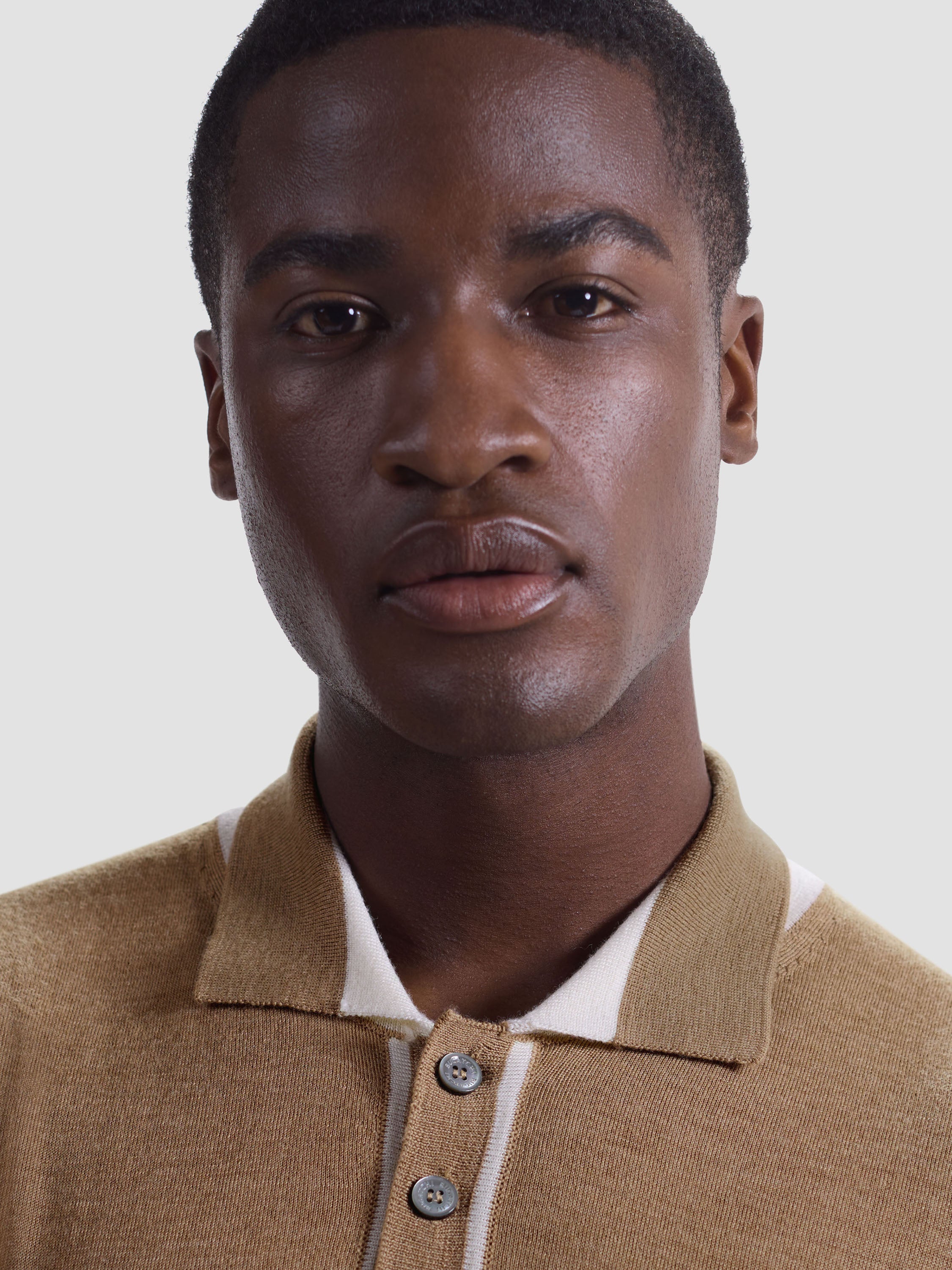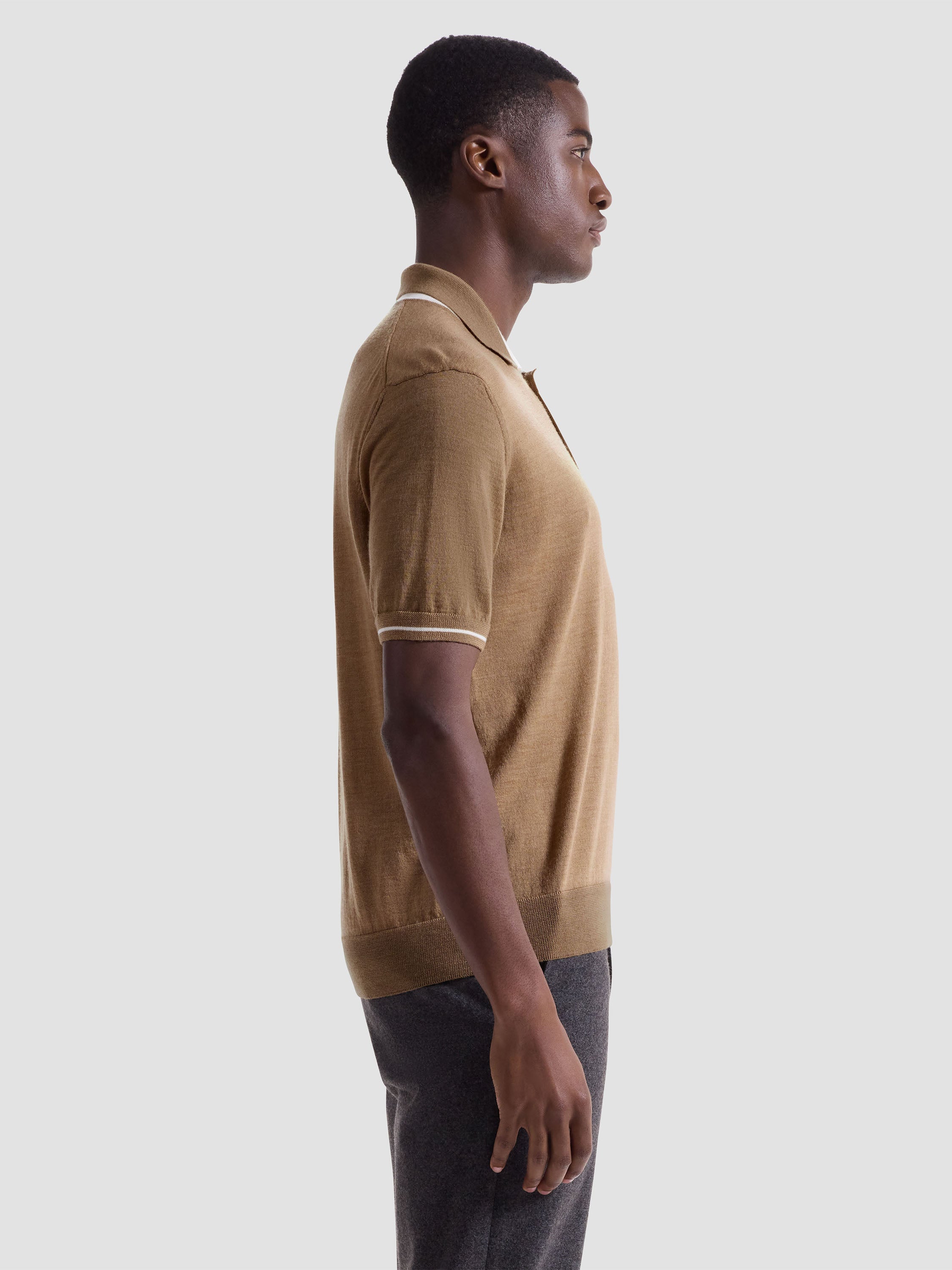 Crafted in Italy from a luxurious blend of extrafine merino wool and silk, this short-sleeve polo features contrast tipping on the placket and cuffs, a contrast interior collar band, and a ribbed hem. Finished with a refined three-button closure and mother-of-pearl buttons, it blends effortless elegance with thoughtful detail.