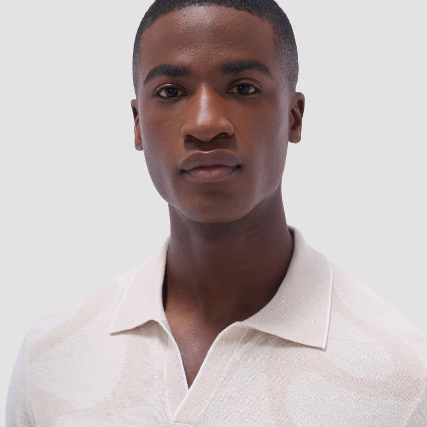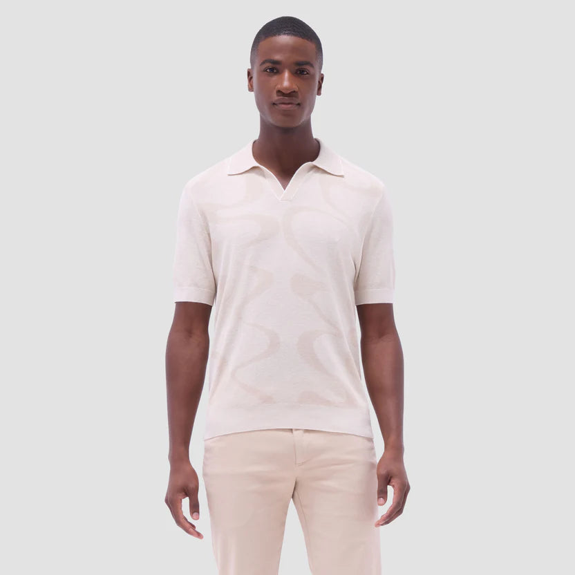 Bugatchi Abstract Knit Sweater Polo - Chalk