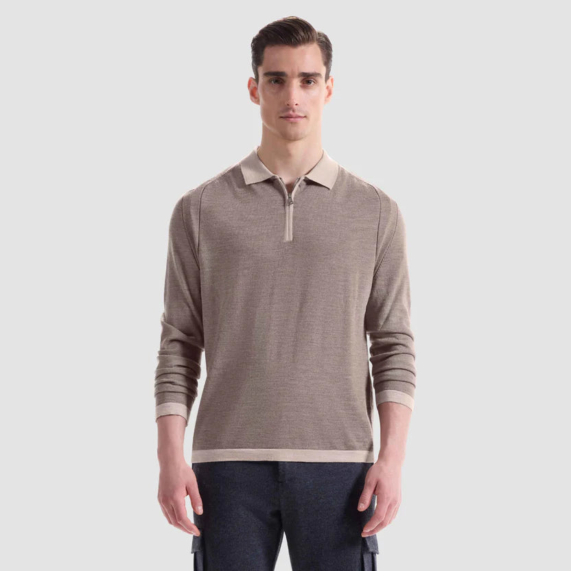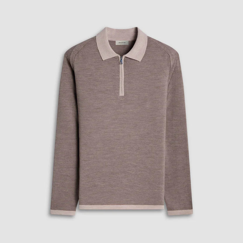 Bugatchi Merino Melange LS Zip Polo - Walnut