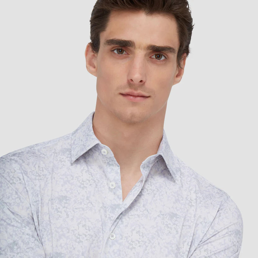 James long-sleeved shirt in solid color OoohCotton with point collar, French placket, adjustable notched cuffs and curved hem. OoohCotton is a double mercerized, wrinkle resistant, antimicrobial cotton with 8-way stretch, breathability, easy-care, quick dry and thermal comfort features.
