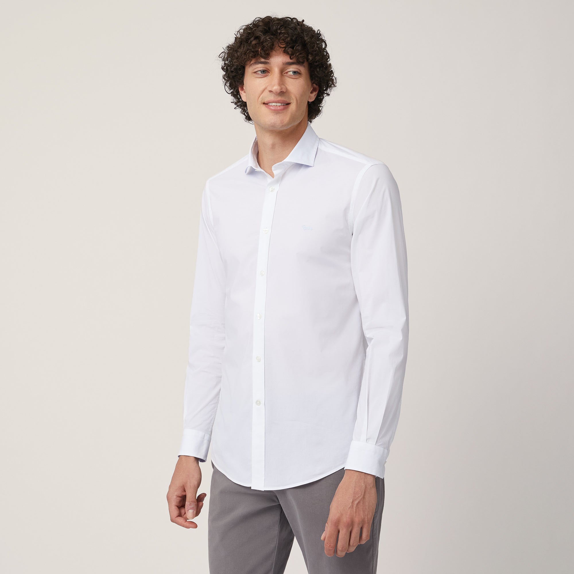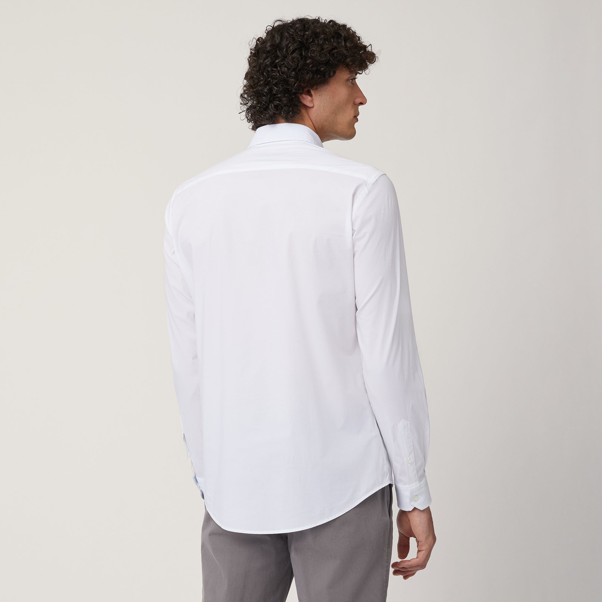 This men's stretch-cotton shirt is revamped into a fresh, versatile design featuring a striking hidden detail: a contrasting fabric in the undercollar and inside of the cuffs. The style, which comes in a narrow fit, perfect for those who prefer a slightly tighter look, features a wide collar and a rounded hem, a detail that allows the shirt to be worn comfortably either outside the pants, for a more casual look, or tucked inside them, for a slightly more refined appearance. On the chest is the must-have unmistakable Harmont & Blaine signature: the embroidered iconic dachshund.