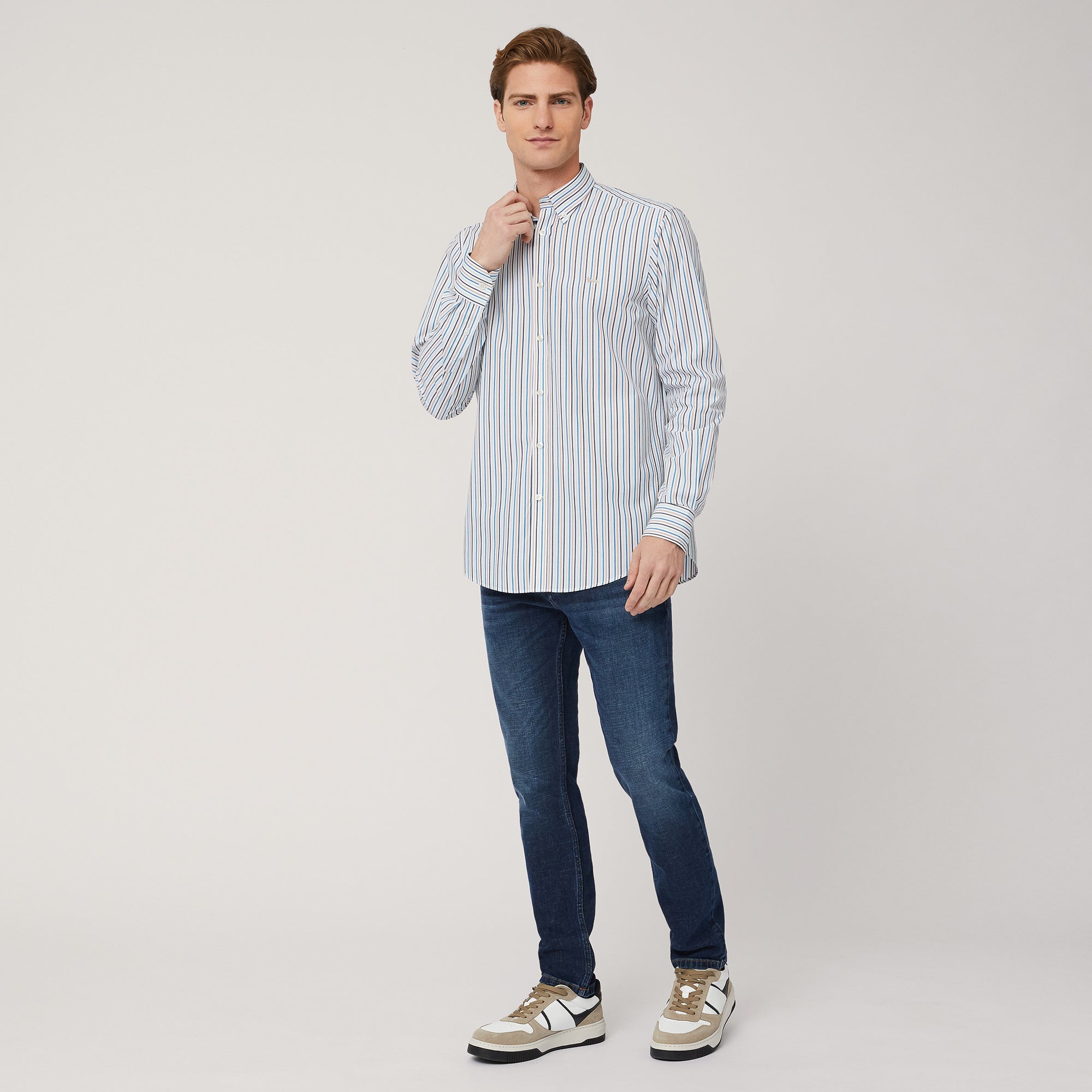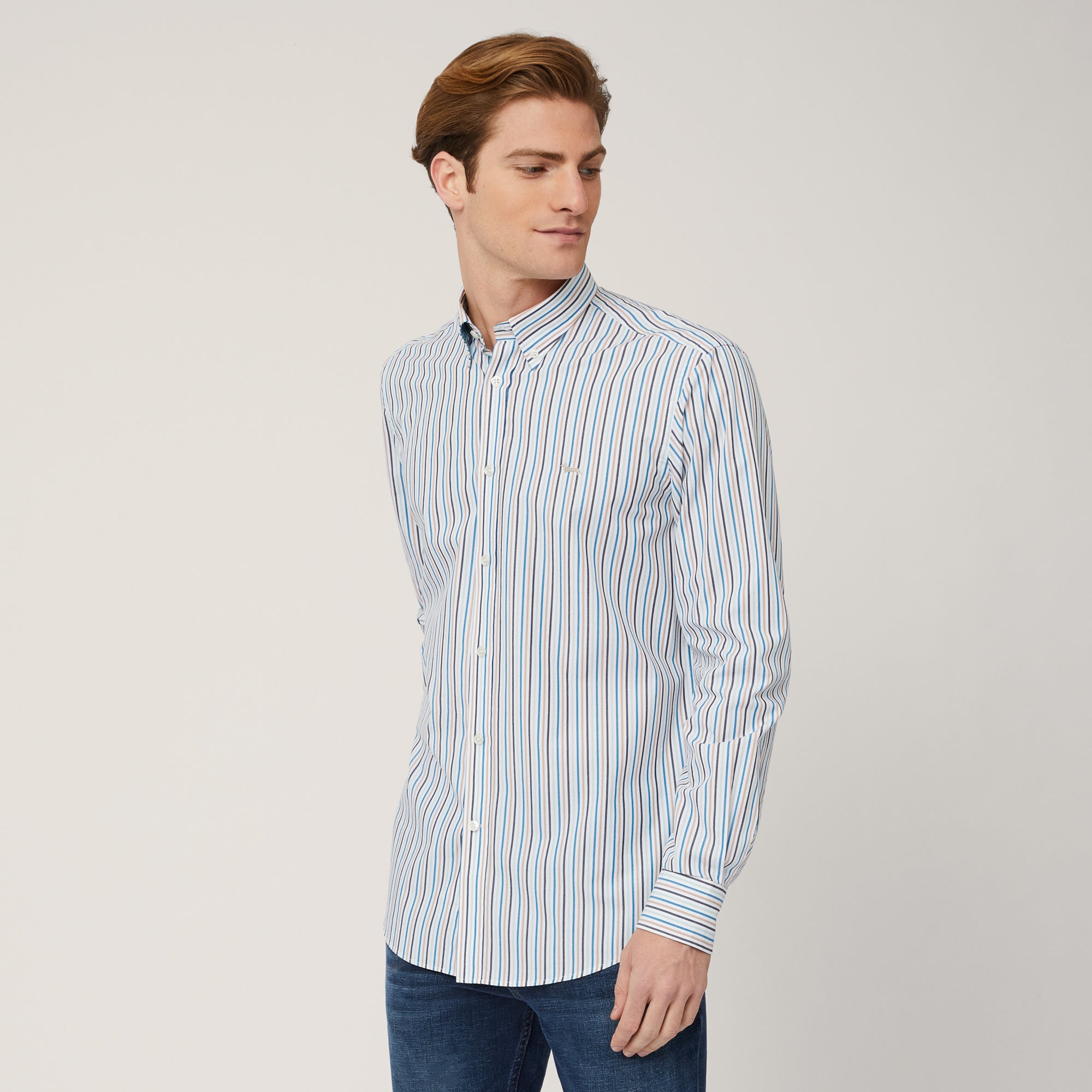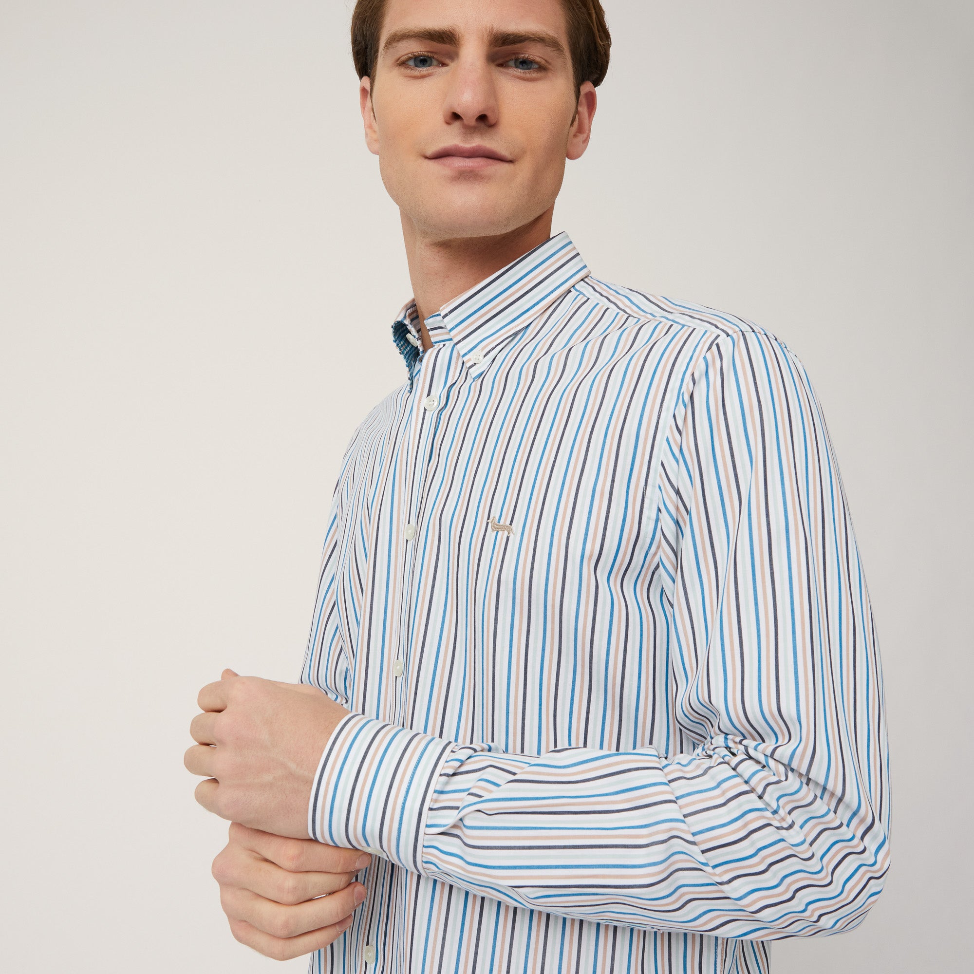 The yarn-dyed striped men's shirt with contrasting fabric on the inside of the cuffs and undercollar will complete your more carefree looks or give more formal outfits a vibrant edge thanks to the fresh vertical striped pattern. The button-down collar, rounded hem and regular fit are a guarantee of comfort and practicality, while the embroidery of the iconic dachshund on the chest is the refined detail that completes the design.