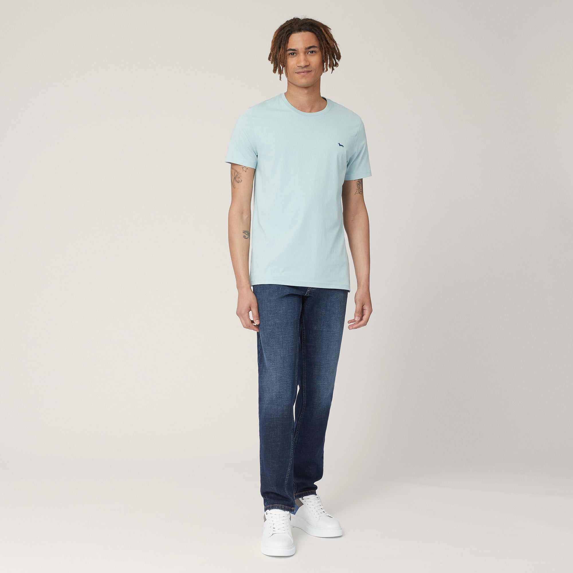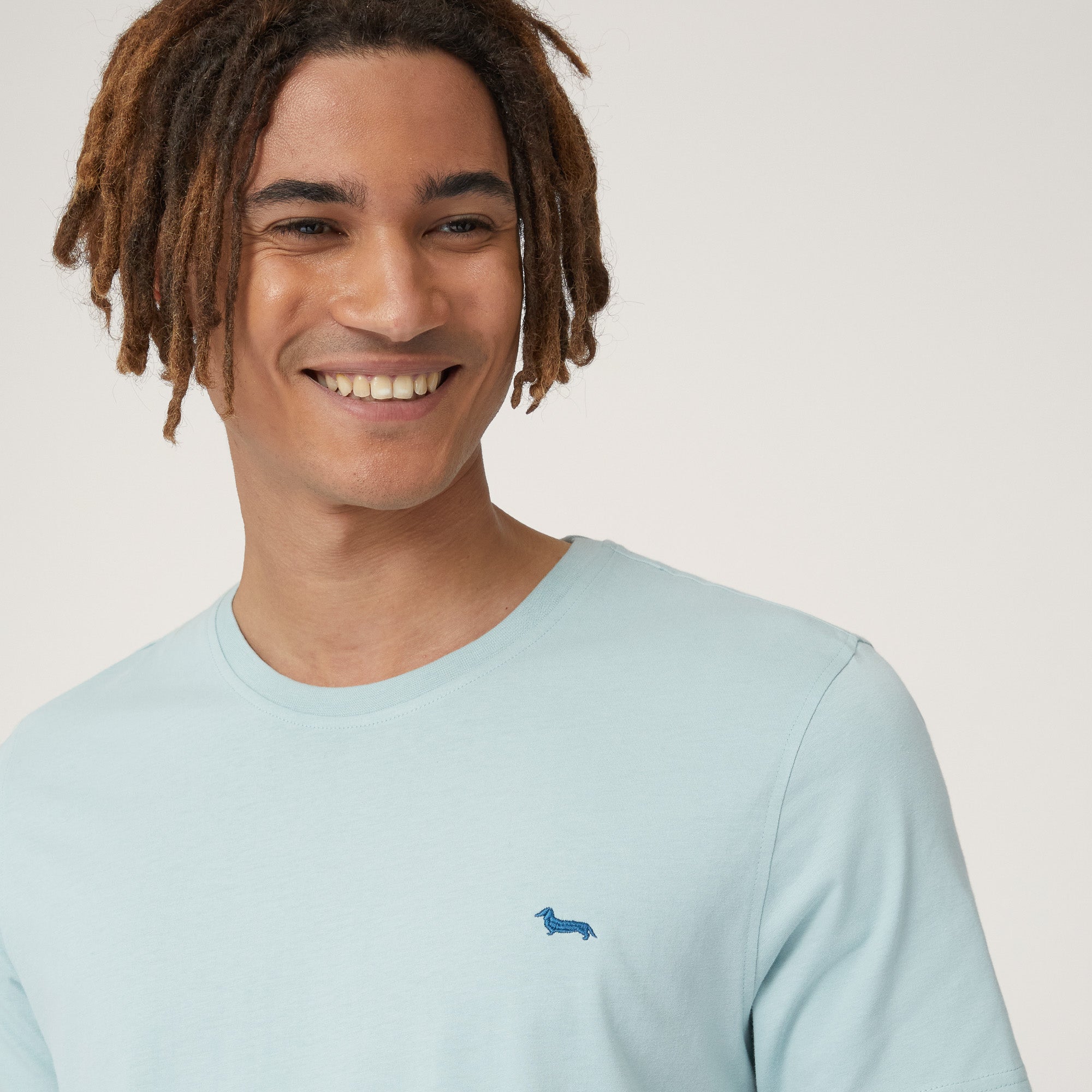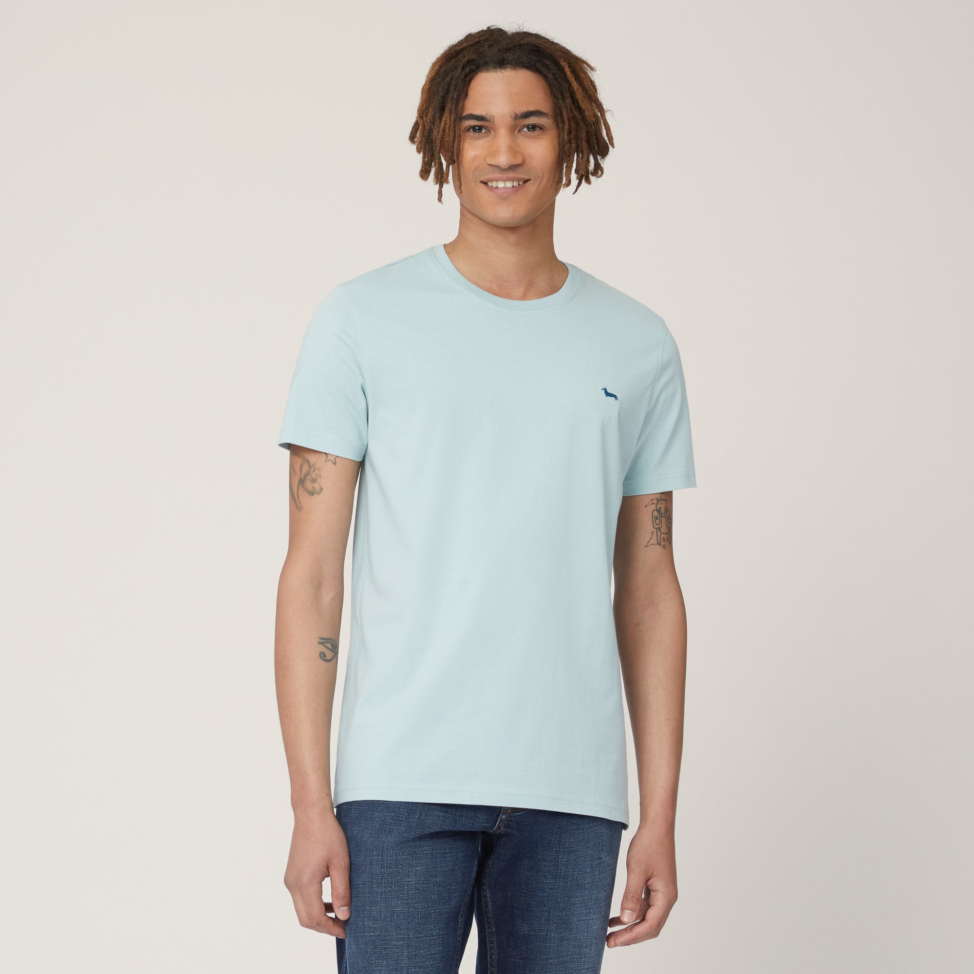 Made of 100% cotton, this lightweight and summery men's T-shirt is ready to liven up warm weather days. The garment comes in a slightly tighter narrow fit, featuring clean, minimalist lines, a crew neck design and the ever-present customized detail: the Harmont & Blaine symbol, the dachshund, embroidered in contrasting thread on the chest.