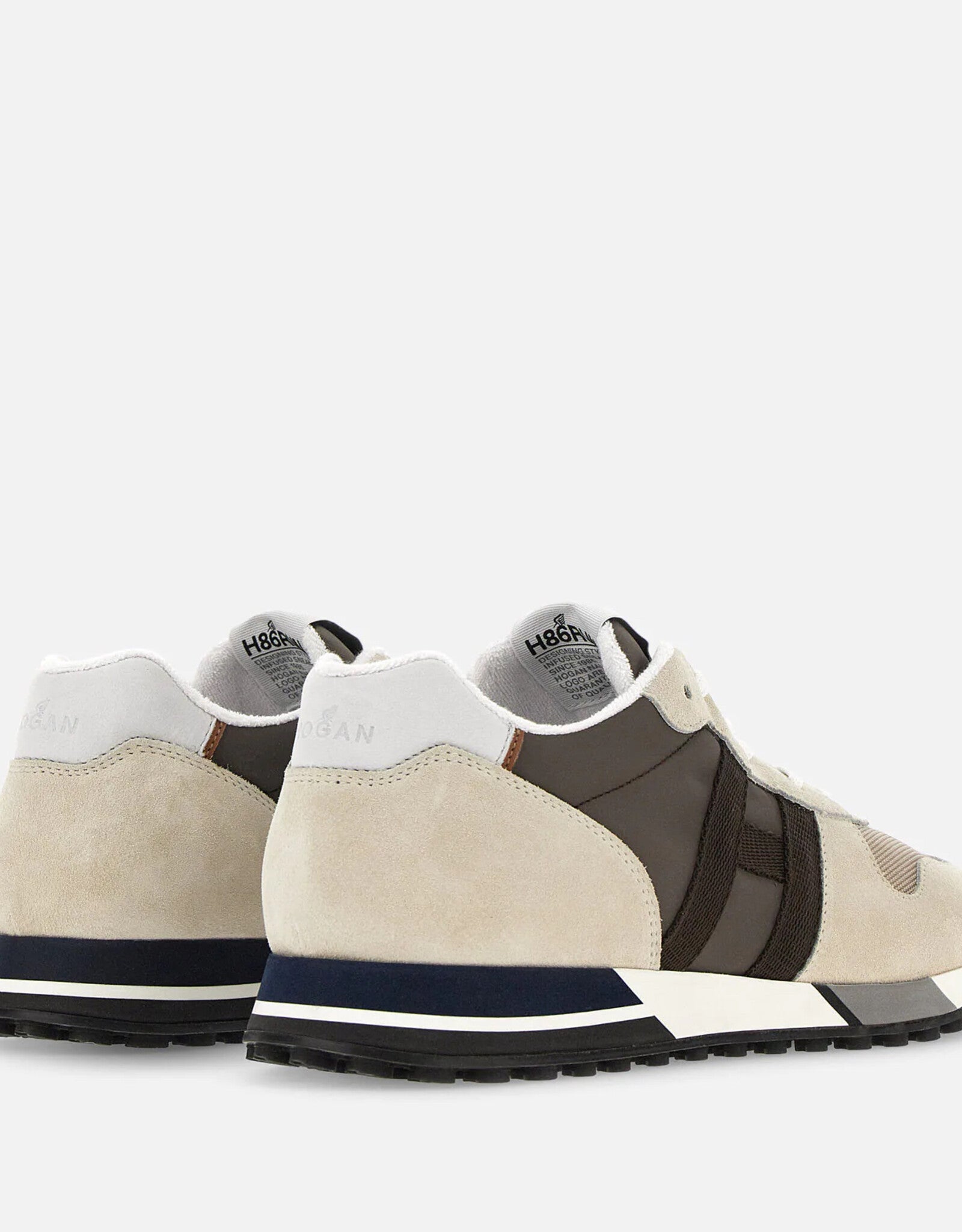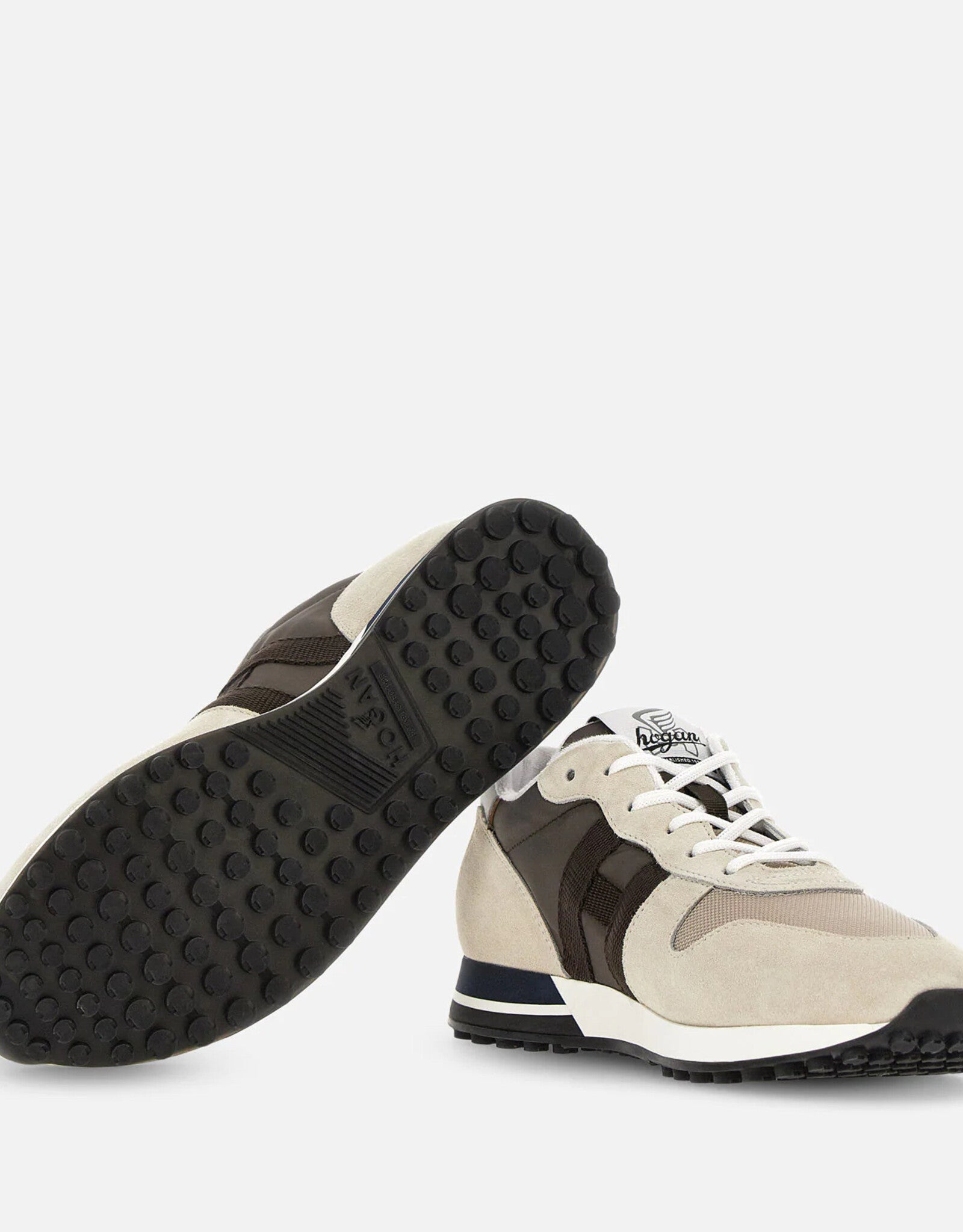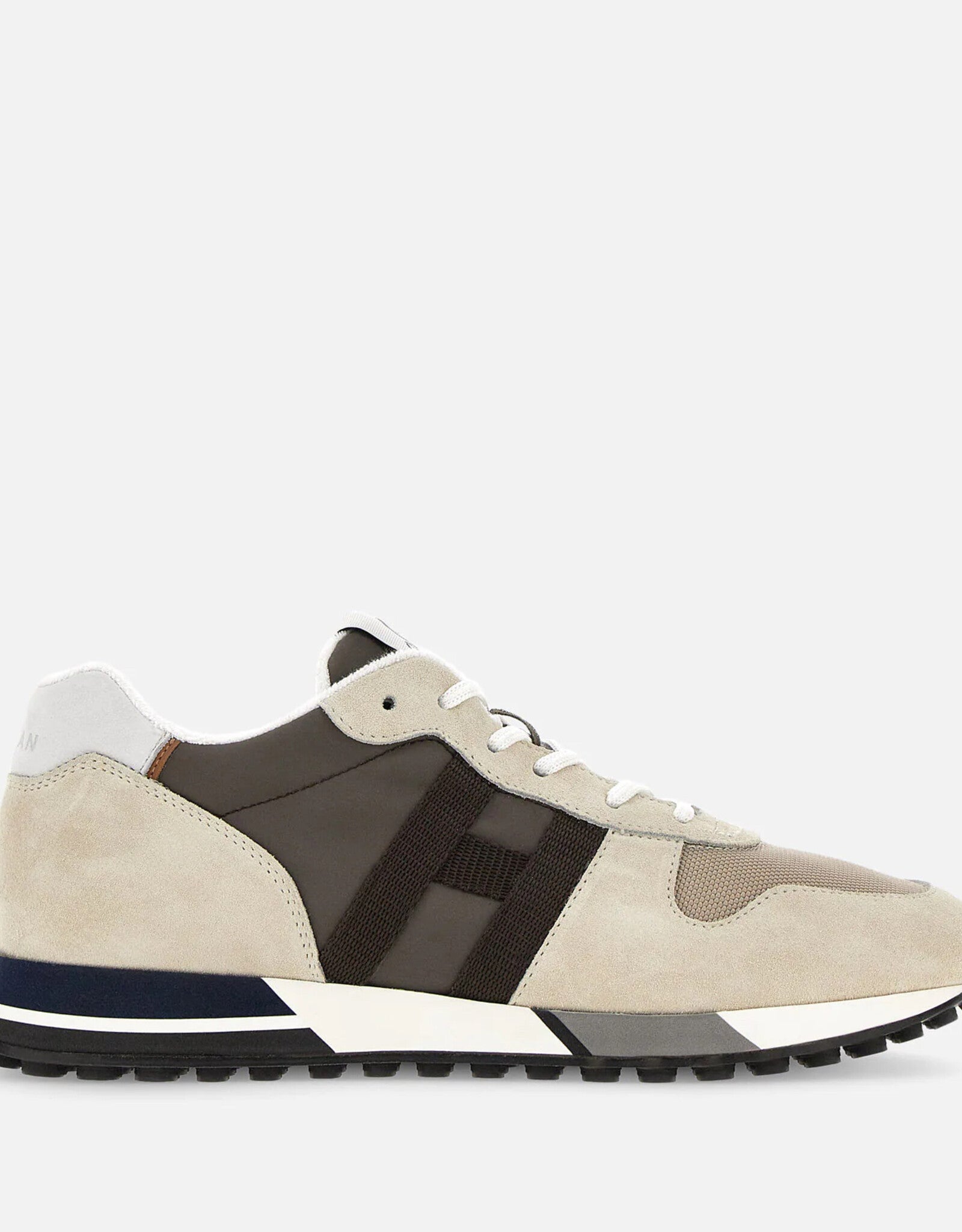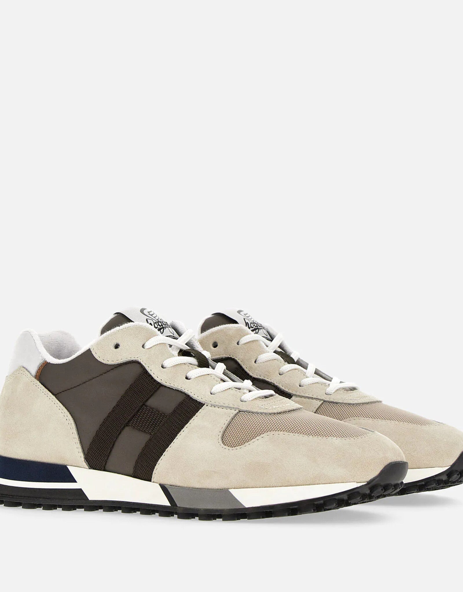 This Hogan H383 declines the stylistic features of the 70s athletics in an urban dimension, versatile and timeless. Lightweight and high-performing, thanks to the characteristic cleated outsole, they come with the distinctive side H in grosgrain. These sneakers in suede, nubuck and technical fabric enhance your everyday outfit with a bold and dynamic twist.