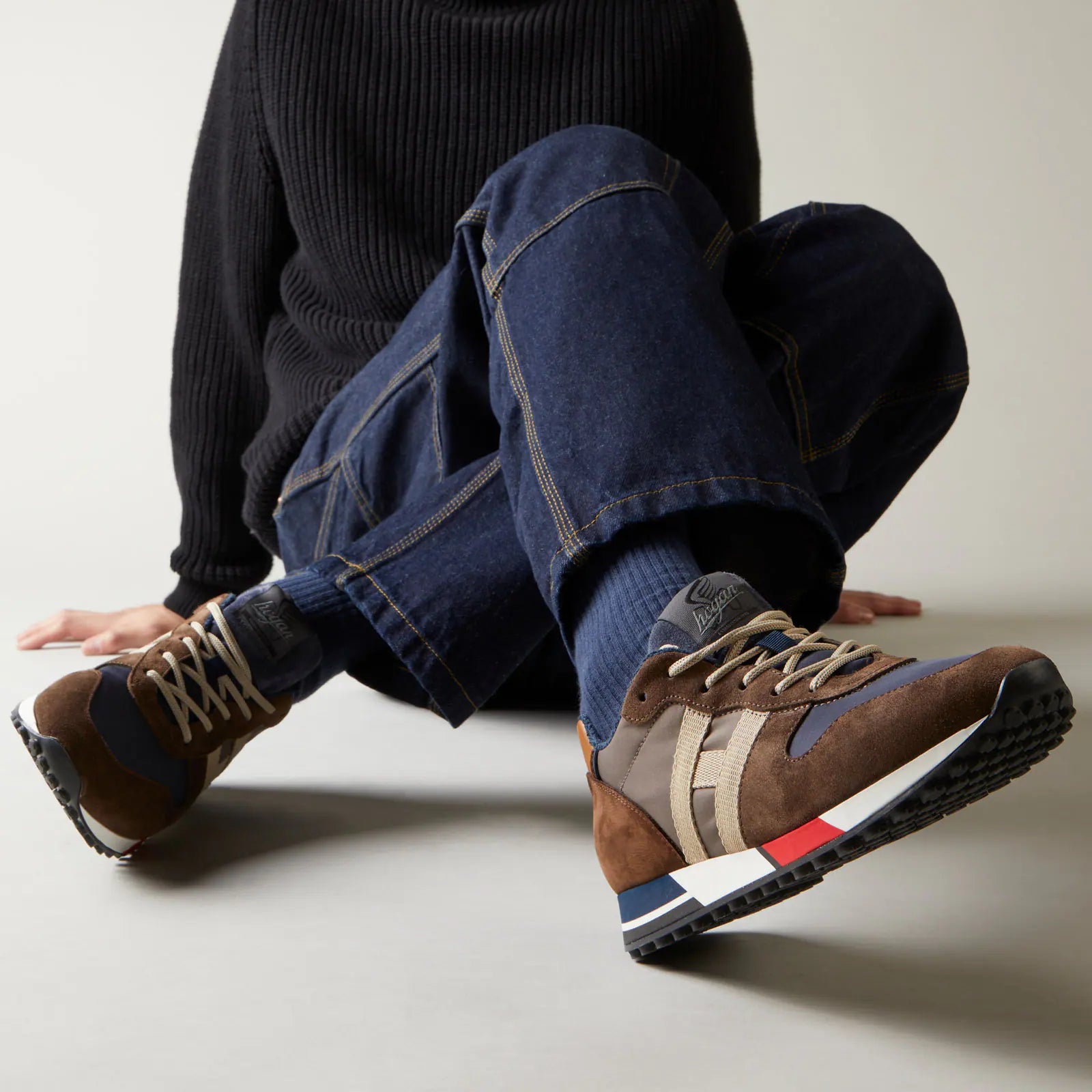 This Hogan H383 declines the stylistic features of the 70s athletics in an urban dimension, versatile and timeless. Lightweight and high-performing, thanks to the characteristic cleated outsole, they come with the distinctive side H in grosgrain. These sneakers in suede, nubuck and technical fabric enhance your everyday outfit with a bold and dynamic twist.