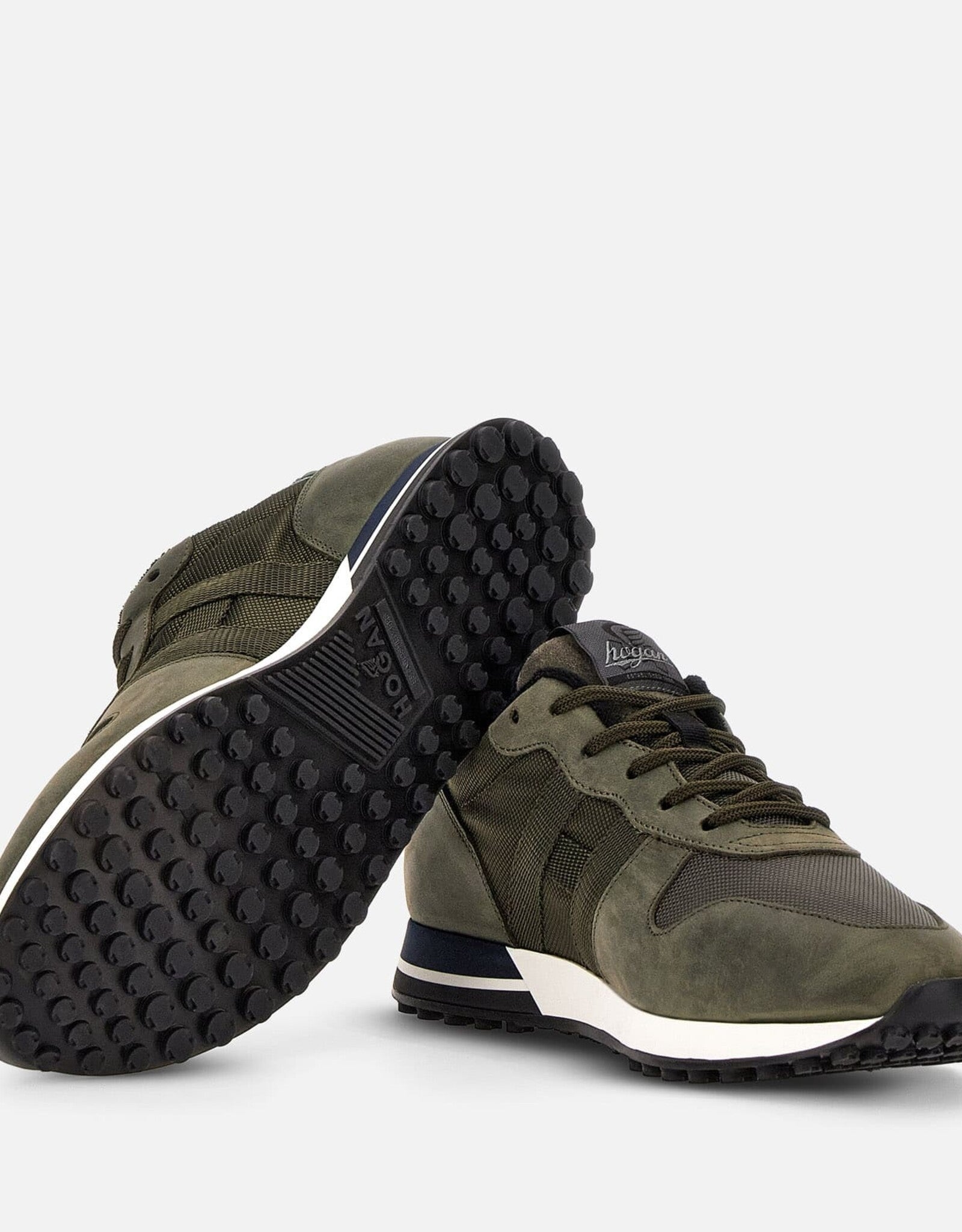 This Hogan H383 declines the stylistic features of the 70s athletics in an urban dimension, versatile and timeless. Lightweight and high-performing, thanks to the characteristic cleated outsole, they come with the distinctive side H in grosgrain. These sneakers in suede, nubuck and technical fabric enhance your everyday outfit with a bold and dynamic twist.