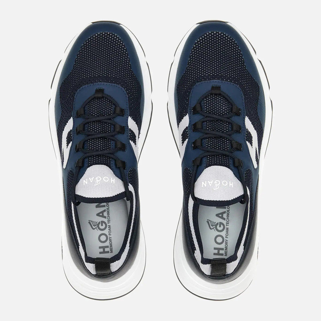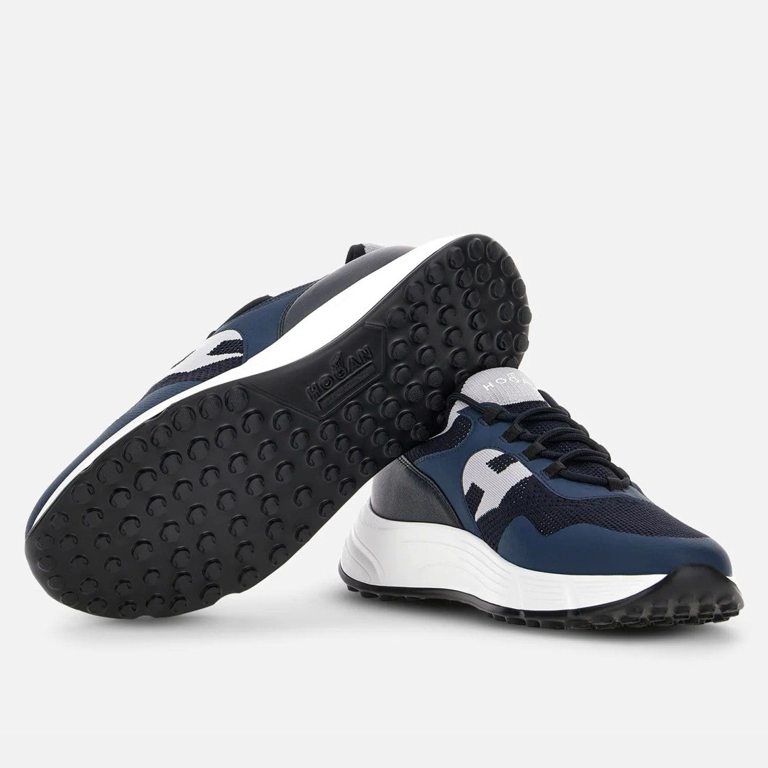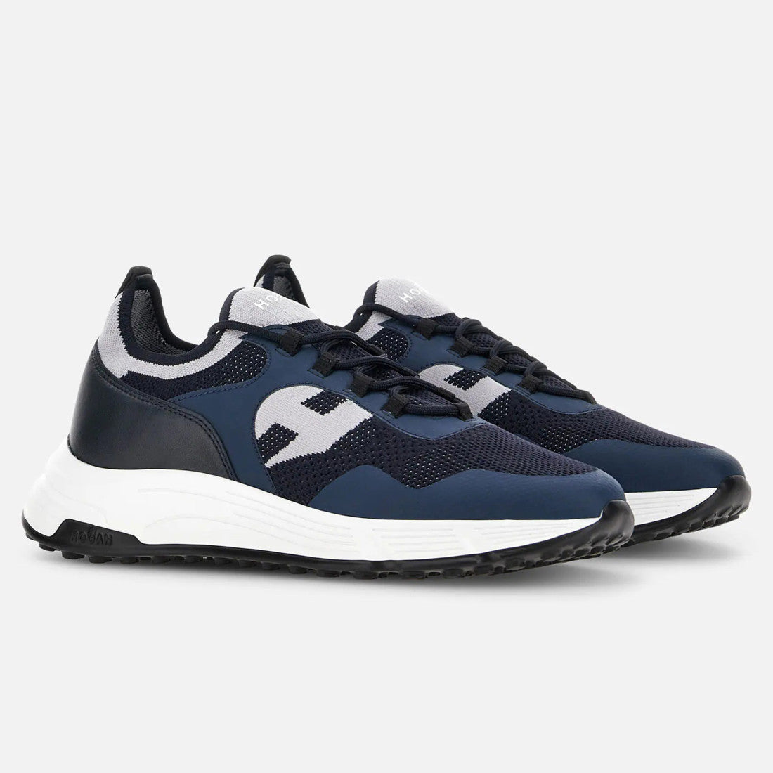 Characterized by smooth and dynamic forms, the Hogan Hyperlight sneakers combine the jogging shoe lines and urban features. The nubuck and smooth leather upper, with punched inserts and side H, recalls iconic details of the brand. An ultra dynamic style, with a memory foam insole and a lightweight outsole with spikes inspired by the historic H383 style.