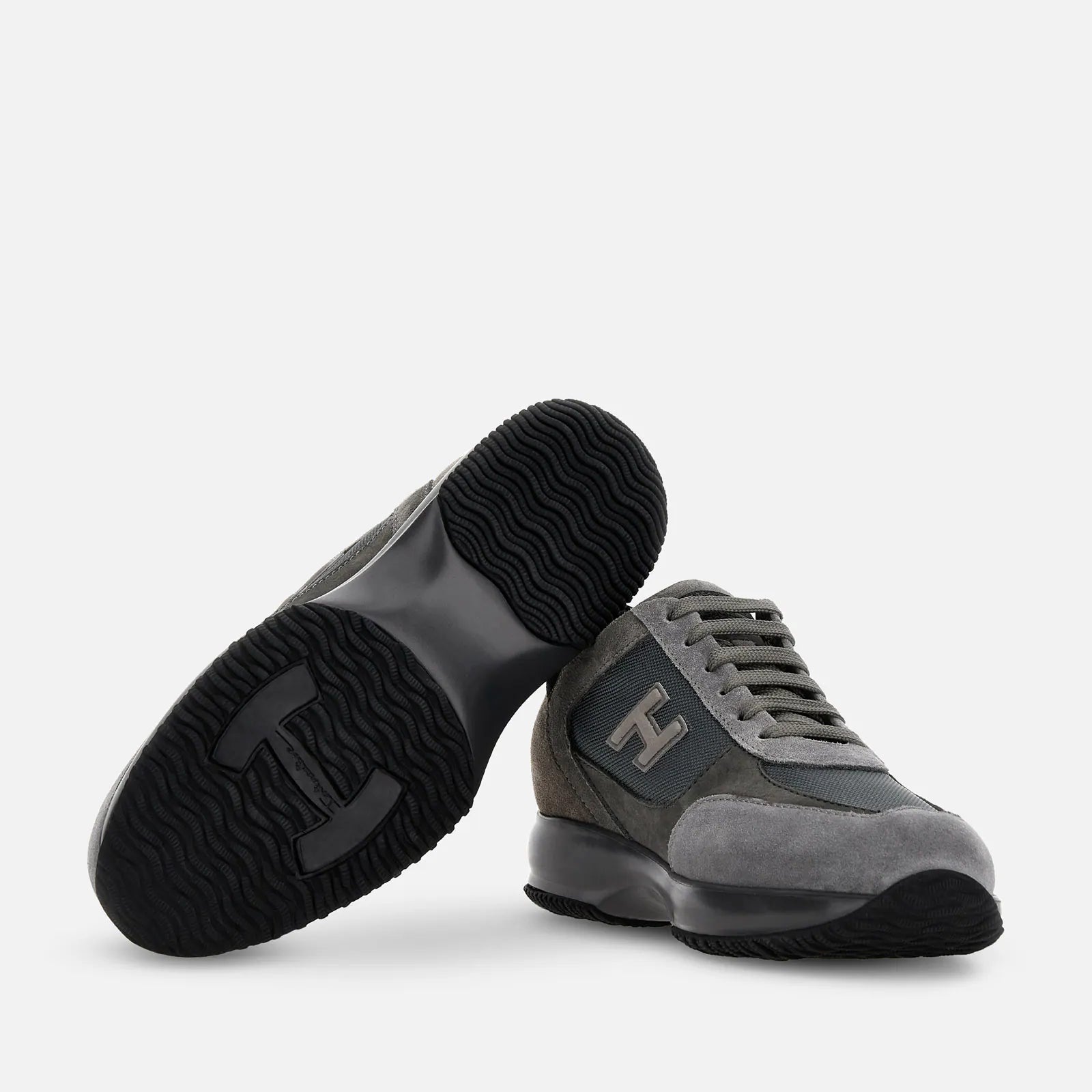 Hogan Interactive is a real timeless icon, characterized by an elegant design and a lightweight outsole to guarantee a tall-and-slim look. Since 1997 it gets renewed with each collection still representing an absolute functional and contemporary luxury icon. These sneakers in suede, technical fabric and nubuck come with a flocked side H. Perfect for an urban casual look.