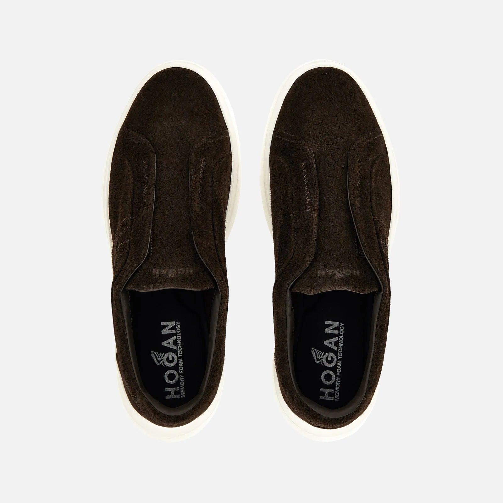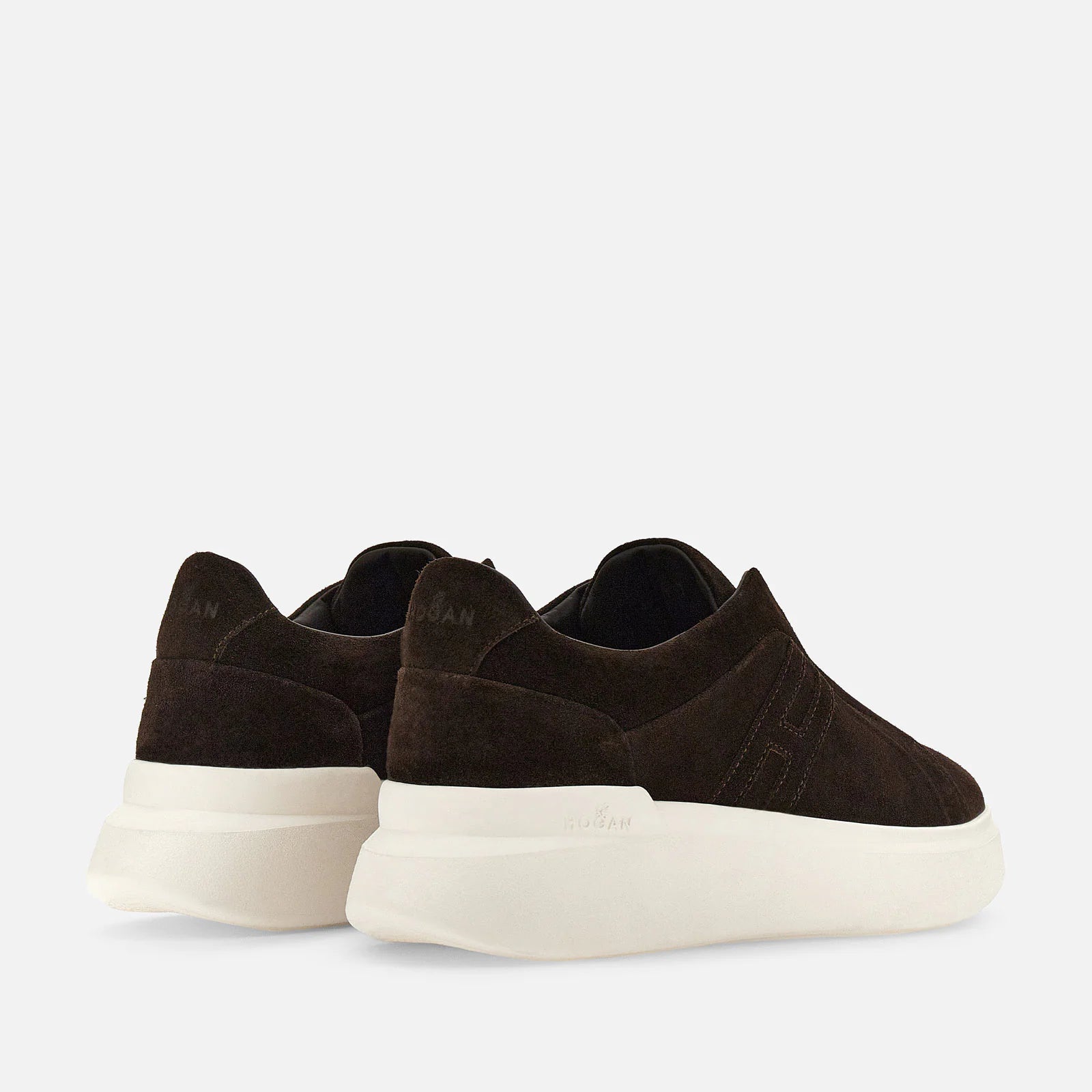 The men's H580 sneakers were designed with the wind and its flow in mind, with harmonious volumes and an aerodynamic outsole. The brushed leather upper, with soft and essential lines, is the background of an extended H that ends in a lace pass. A style with an urban casual vocation, with a memory foam insole to guarantee a cushioned fit.