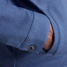 Combining classic trucker styling with advanced performance fabric, this jacket features a refined twill-effect texture and double-faced construction with a smooth interlock jersey interior. Designed with metal buttons throughout for a polished, modern finish. Styled with chest flap pockets, buttoned cuffs, and a waistband for a timeless silhouette.