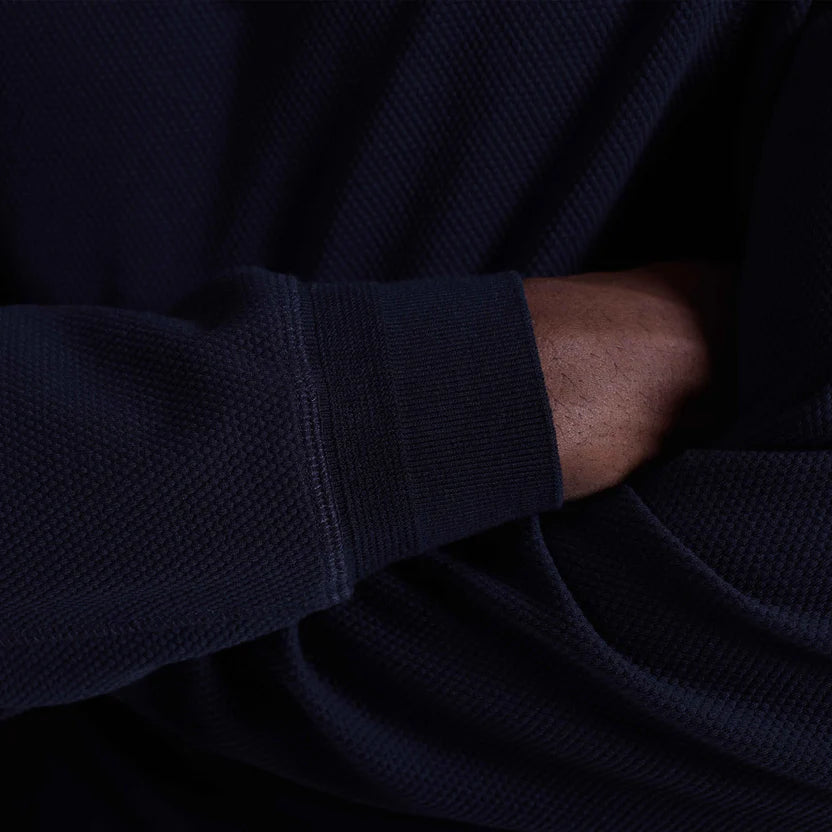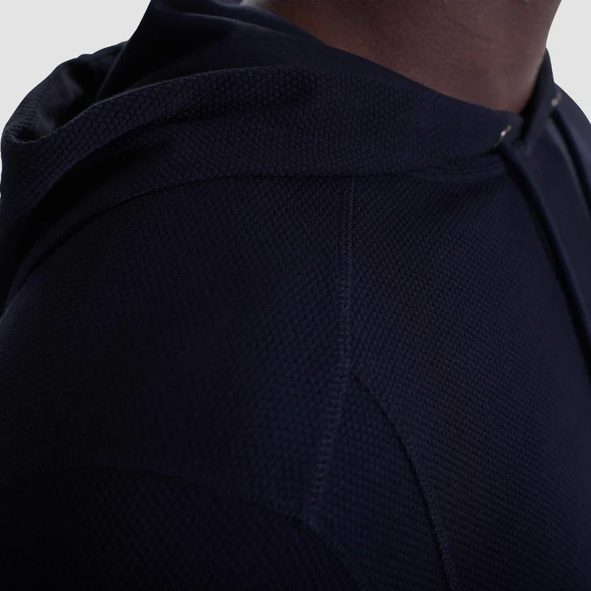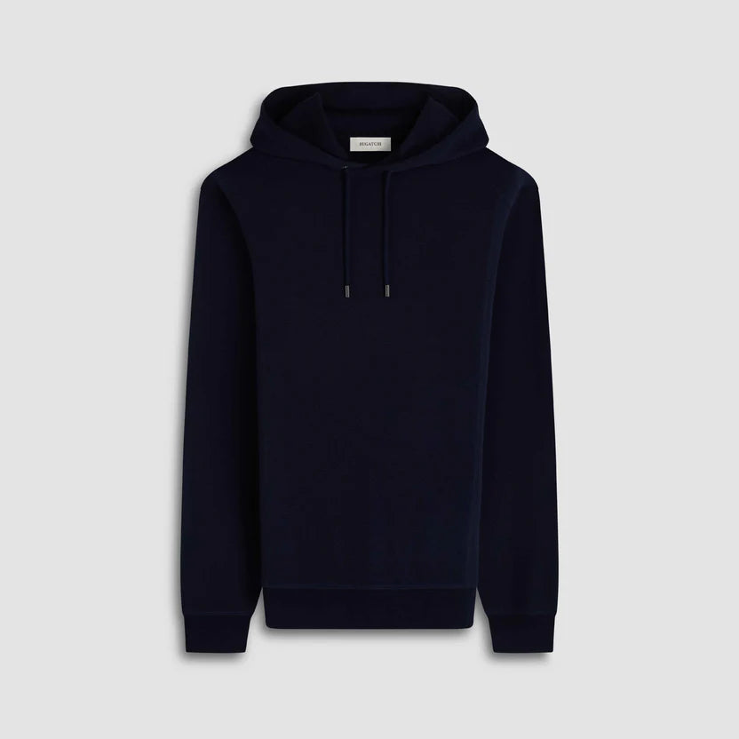 Crafted from a premium Comfort Stretch cotton blend, this hoodie features a textured pique knit for subtle structure and dimension. The hood is lined in smooth solid jersey with adjustable drawstring, while the ribbed cuffs and hem showcase a distinctive knit detail. Finished with overlock stitching for added durability and a refined finish.