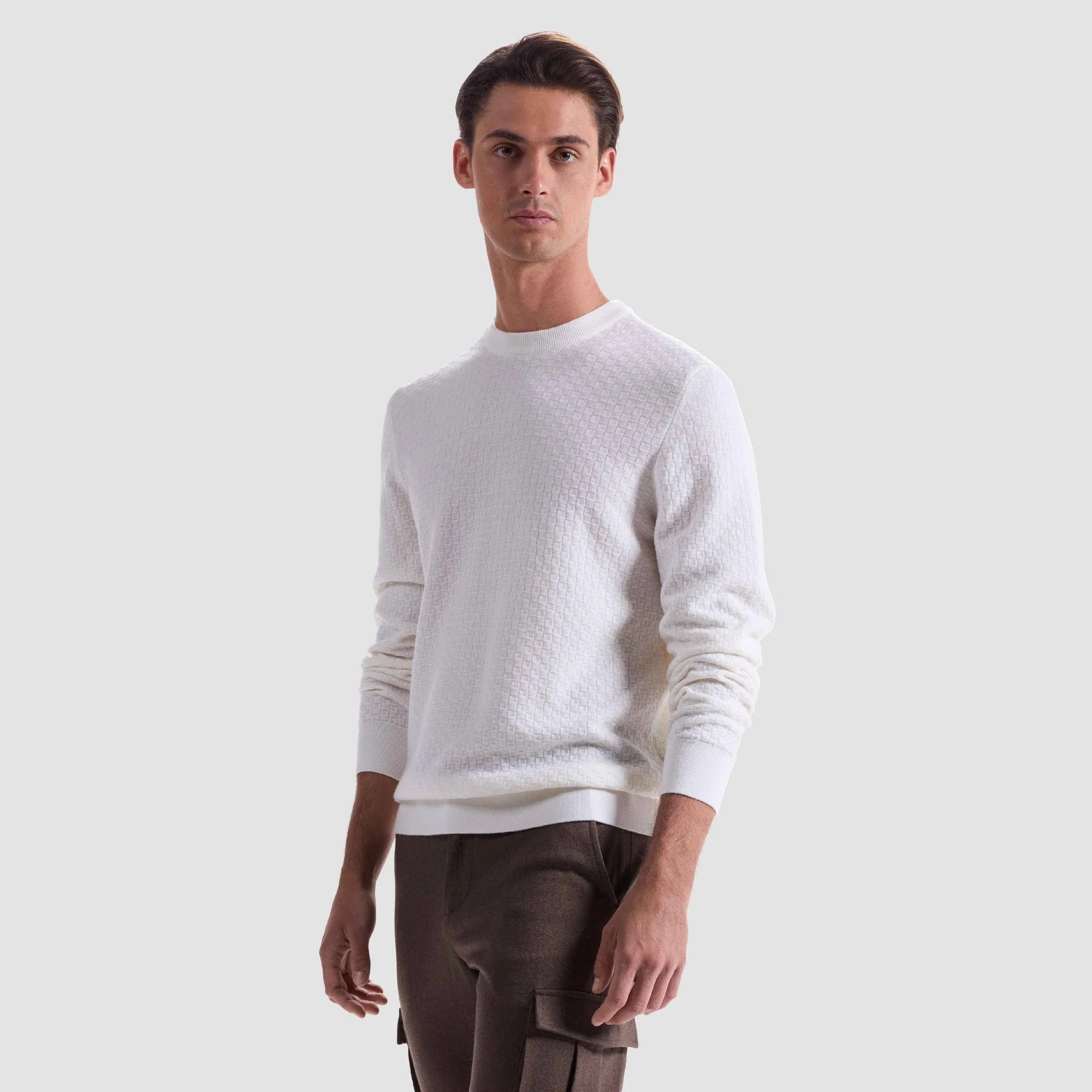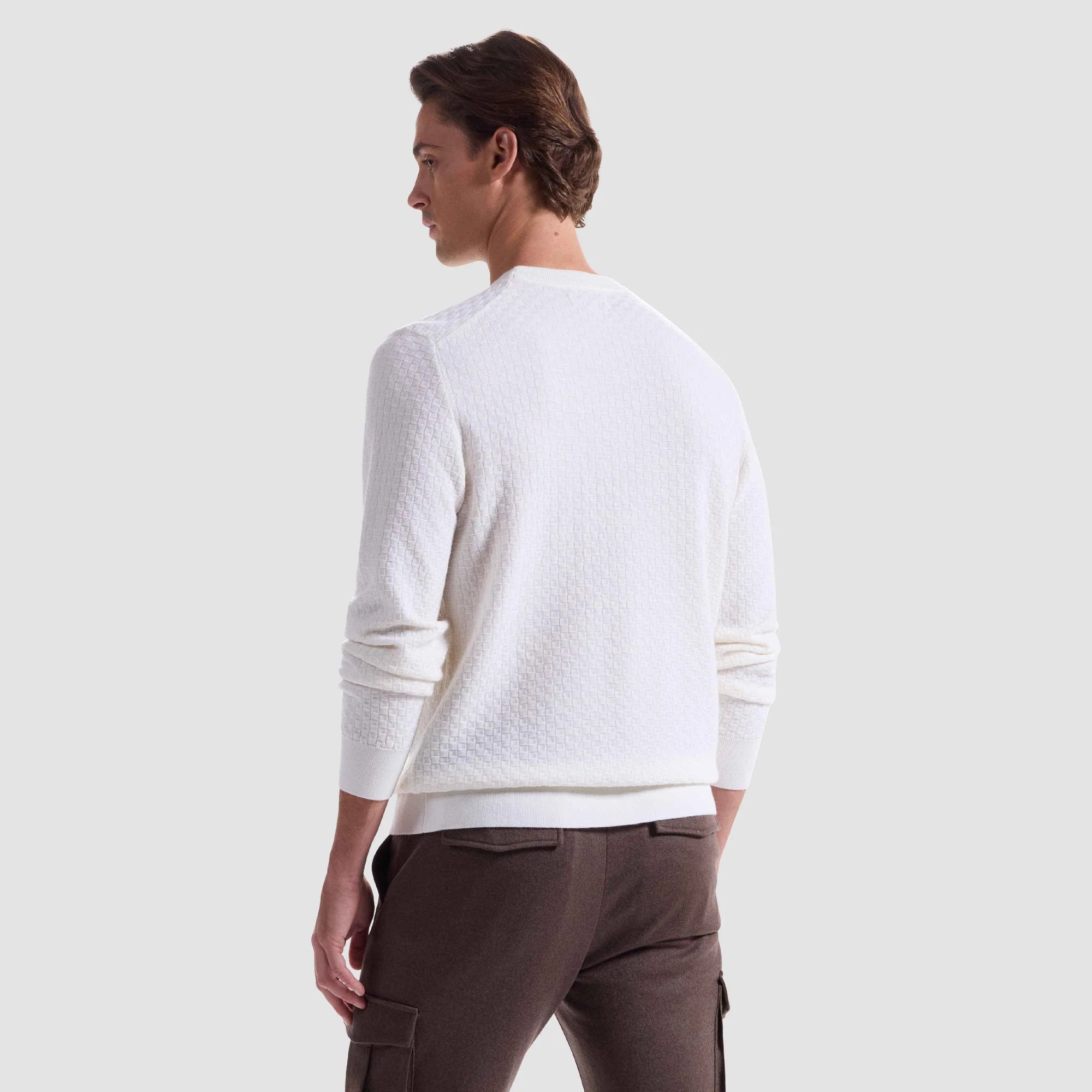 Bugatchi Basketweave Crewneck Sweater - Chalk