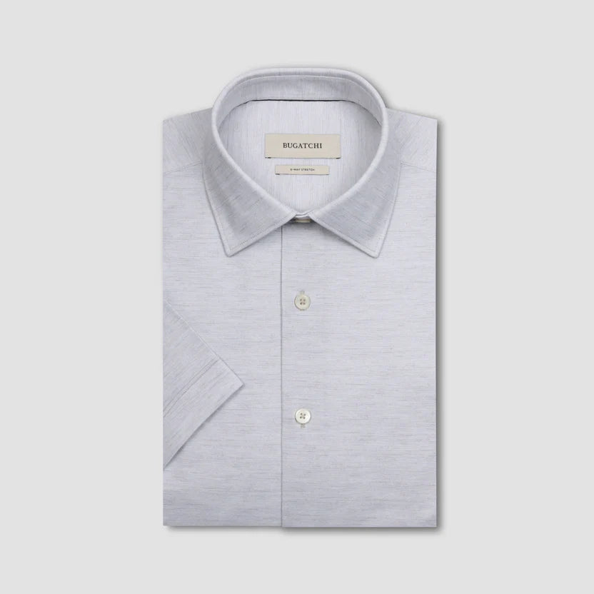 Bugatchi Miles Heathered OoohCotton SS Shirt - White