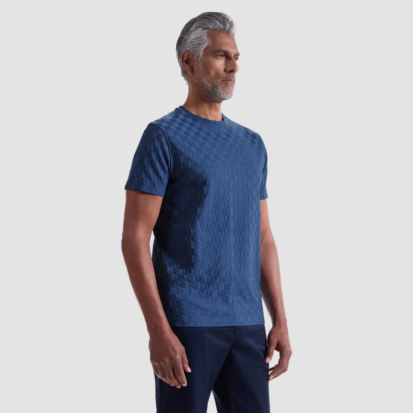 Crafted from 100% premium cotton, this short-sleeve T-shirt features an all-over tonal checkerboard knit for a refined take on casual wear. Lightweight, breathable, and ultra-soft, it's finished with a classic crewneck and clean hems, offering elevated texture in a comfortable everyday silhouette.