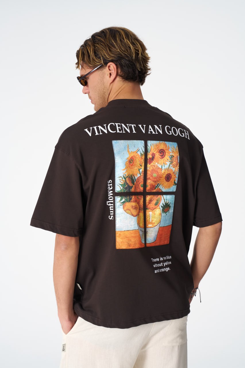 Saw Urbanity Sunflowers Oversize Tee - Brown