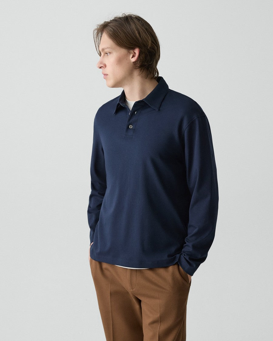 Theory Relaxed LS Polo in Cotton Jersey - Baltic