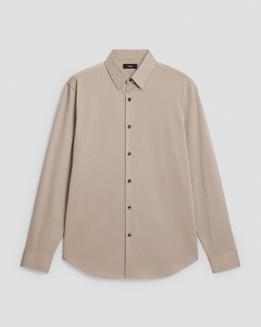Detailed with a camp collar and subtle chevron detailing, this elevated take on the classic button-up is crafted in a high-twist cotton blended with nylon. This versatile style can be worn open with a tee or fully buttoned solo.