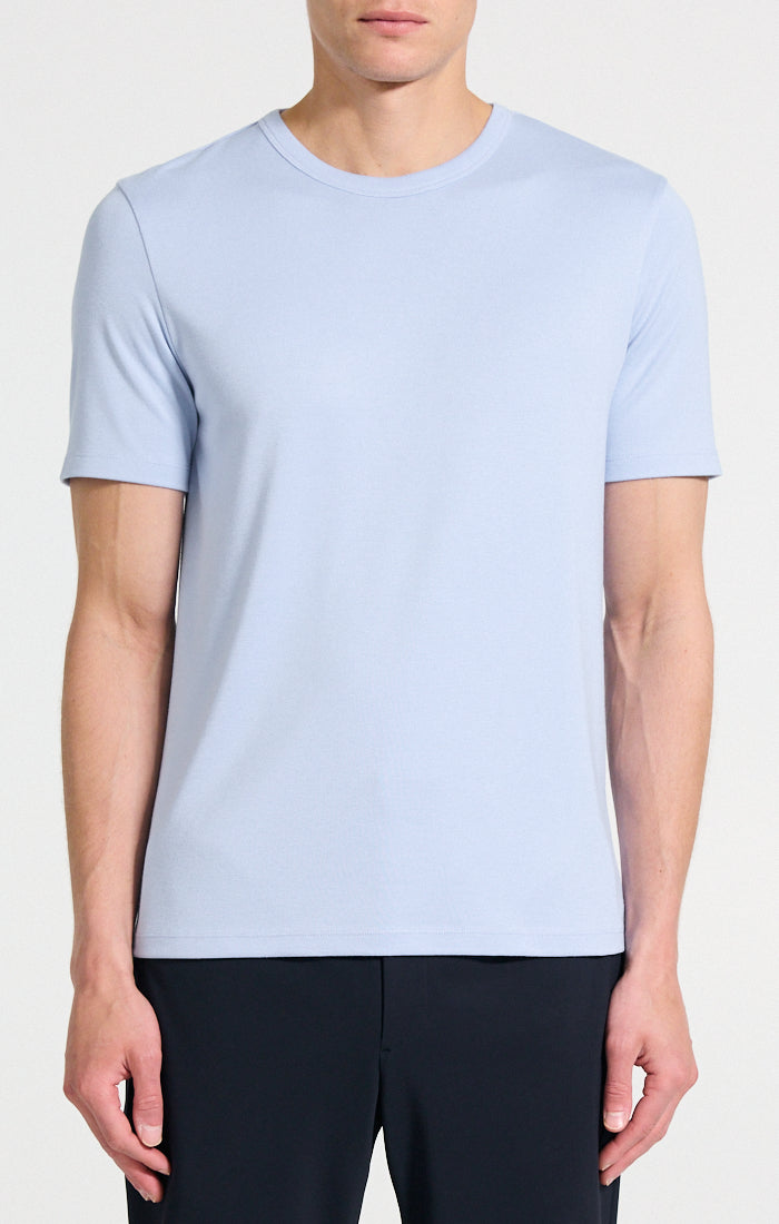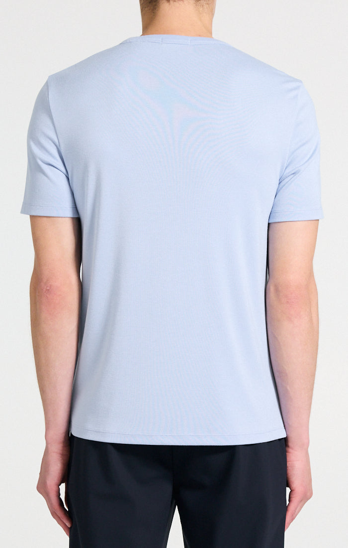 Our tee is cut from a sustainable modal and recycled polyester knit with enhanced elasticity and an activewear feel, this lightweight wardrobe staple layers comfortable under sweaters and jackets alike.