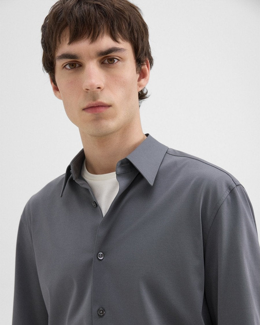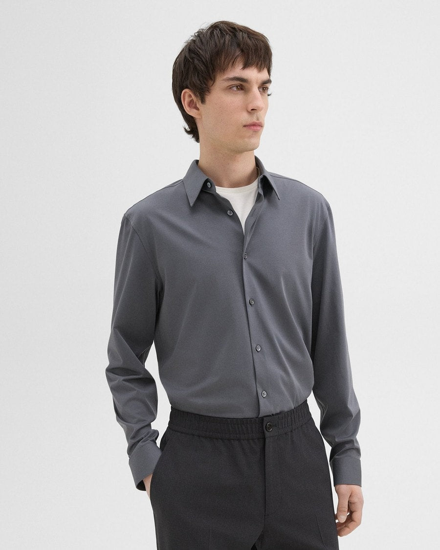 A tailored style with minimal detailing, our Sylvain shirt is designed with a structured point collar, two darts in the back for a refined fit, and a longer hem that’s easy to tuck in. Cut from a banker striped cotton blend fabric produced in Japan with a wrinkle-free construction and UV-protective weave, this everyday button-up pairs well with denim and tailored trousers alike.