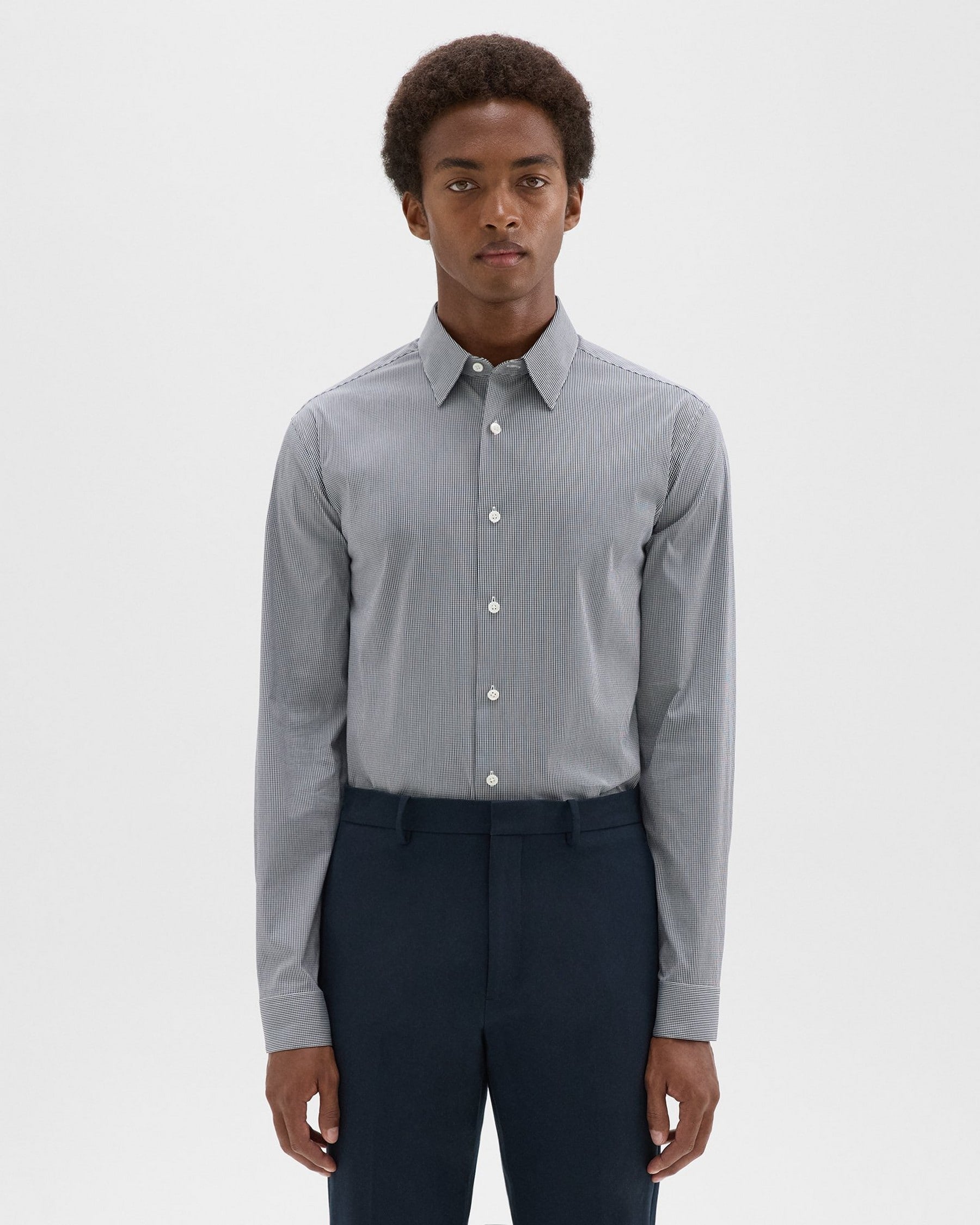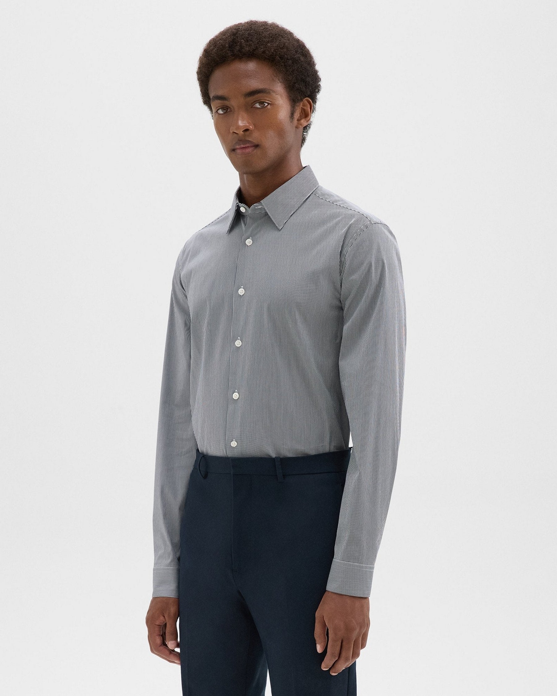 Theory Irving Poplin Micro Check Shirt - White/Navy