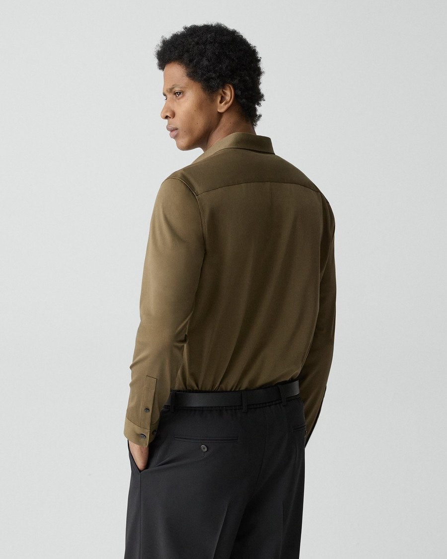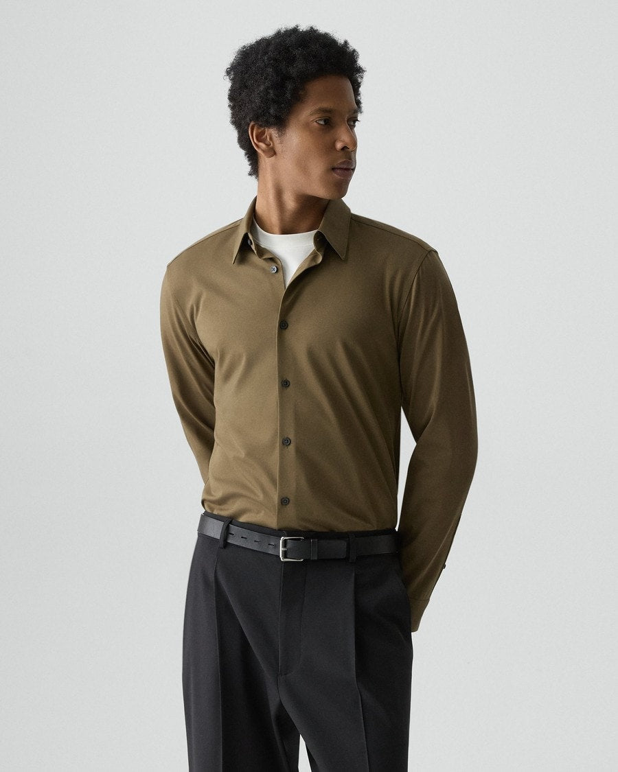 Detailed with a camp collar and subtle chevron detailing, this elevated take on the classic button-up is crafted in a high-twist cotton blended with nylon. This versatile style can be worn open with a tee or fully buttoned solo.