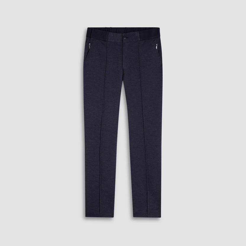 Crafted from Soft Touch performance knit fabric with a heather pattern, these pants feature a ribbed waist, zipper and button fly, slanted front pockets with vertical zippered inserts and rear welt pockets with hidden zippers for secure storage. Pintuck detailing adds a sleek, tailored look. Perfect for golf, casual outings and weekend wear, these pants effortlessly blend style and functionality.