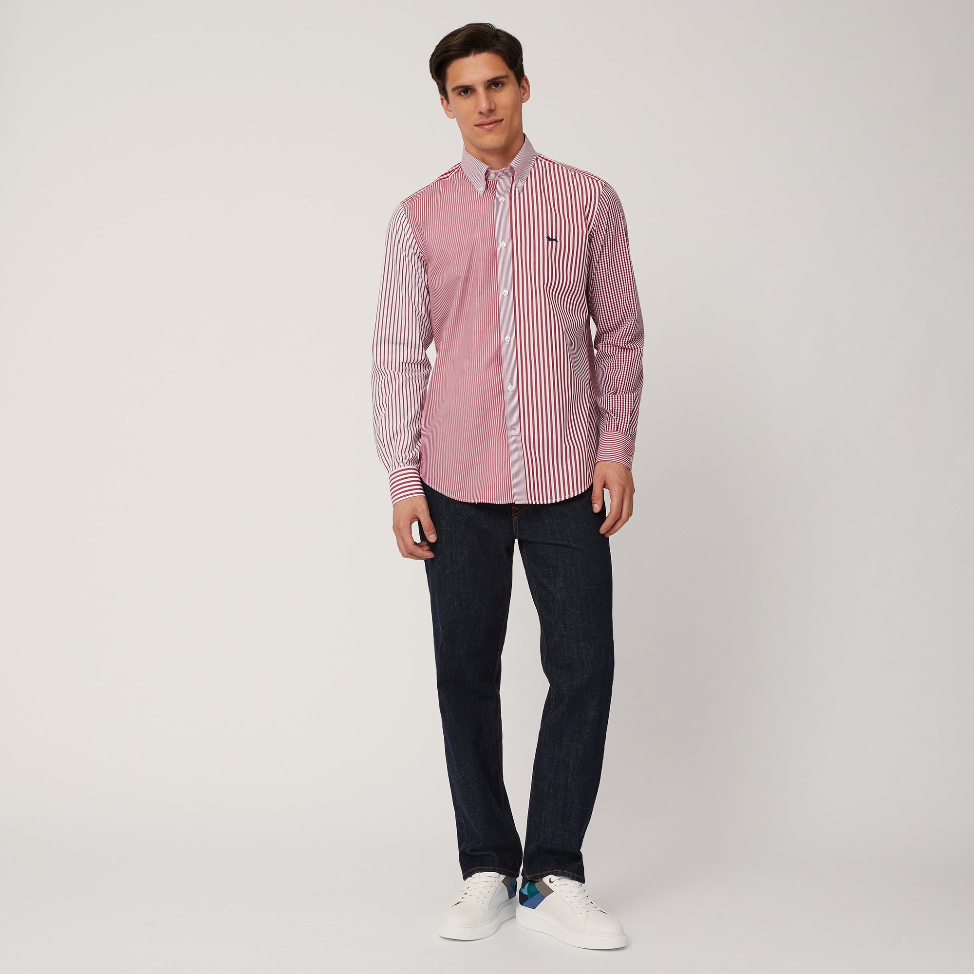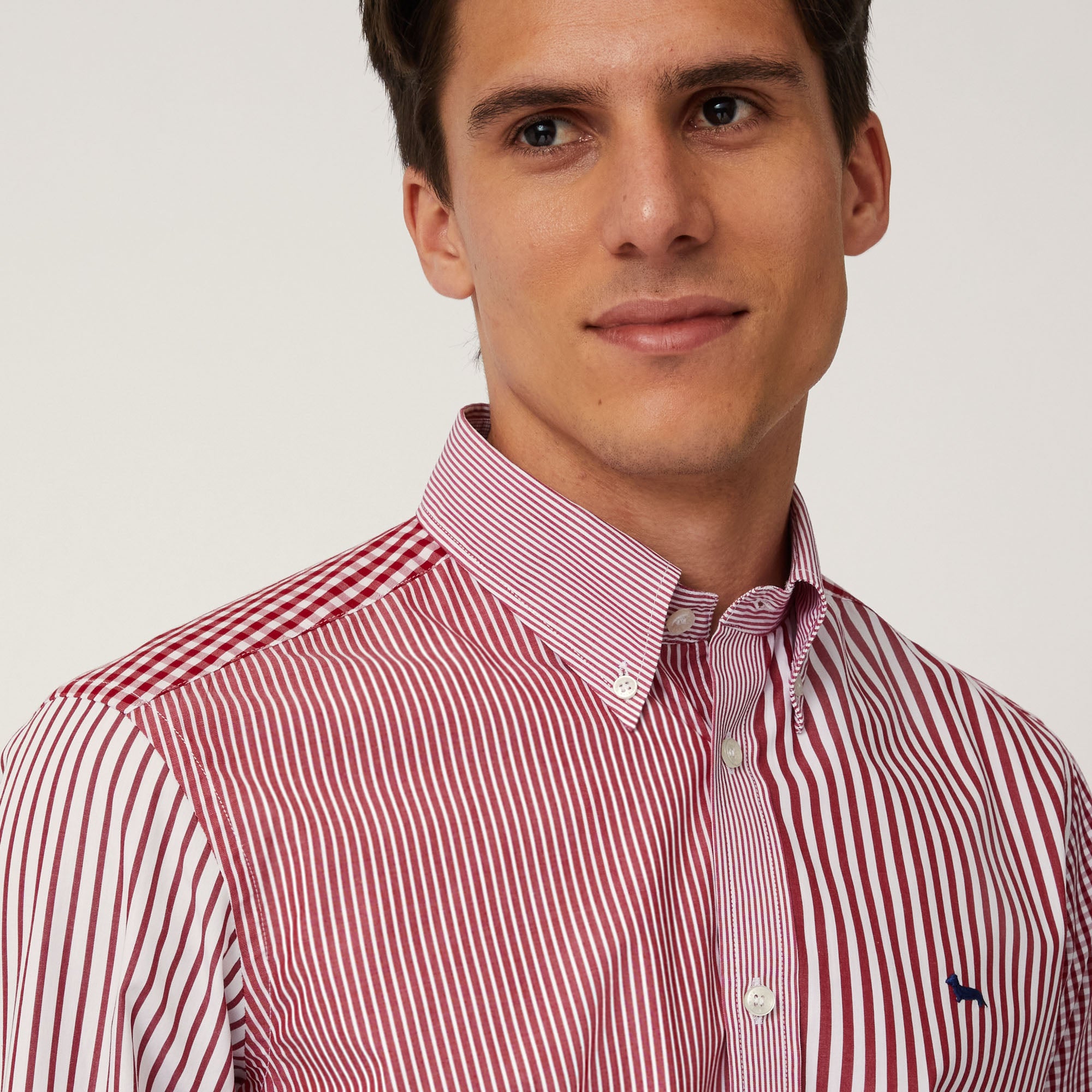 Harmont & Blaine's creativity and originality are on full display in this 100% cotton men's shirt featuring a vibrant mix of eight fabrics with different patterns on the cuffs, sleeves, chest, collar and back. The design, finished on the chest with the iconic embroidered Blaine dachshund, features a button-down collar and a rounded hem that allows the shirt to also be worn tucked into pants for a slightly more formal look. The garment has a regular fit, perfect for enjoying every movement with ease.