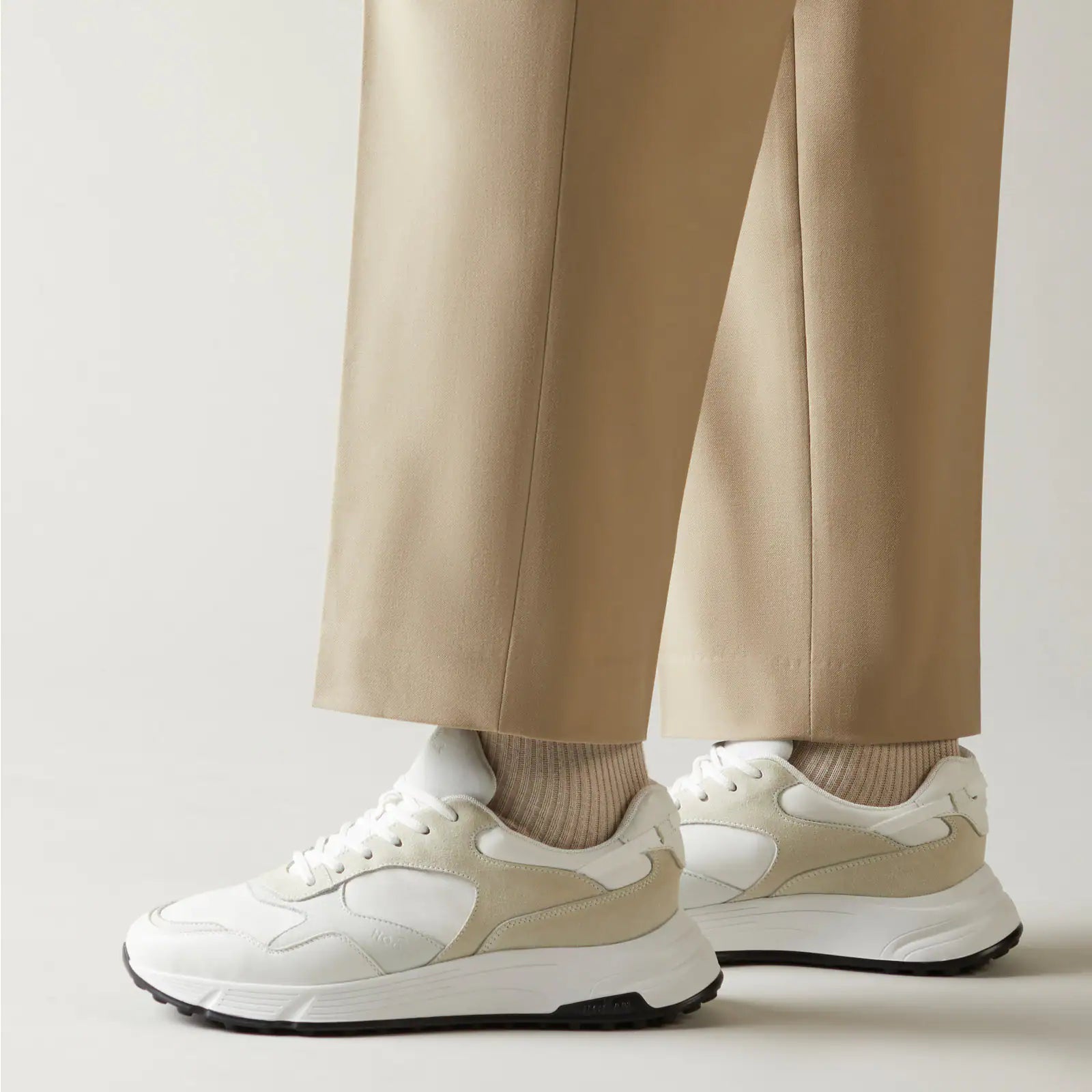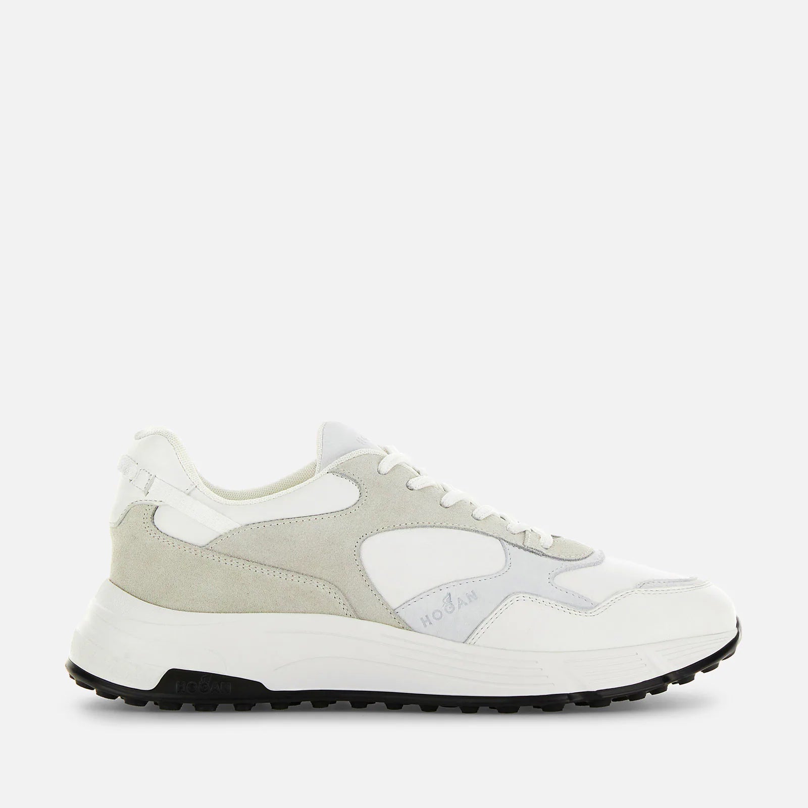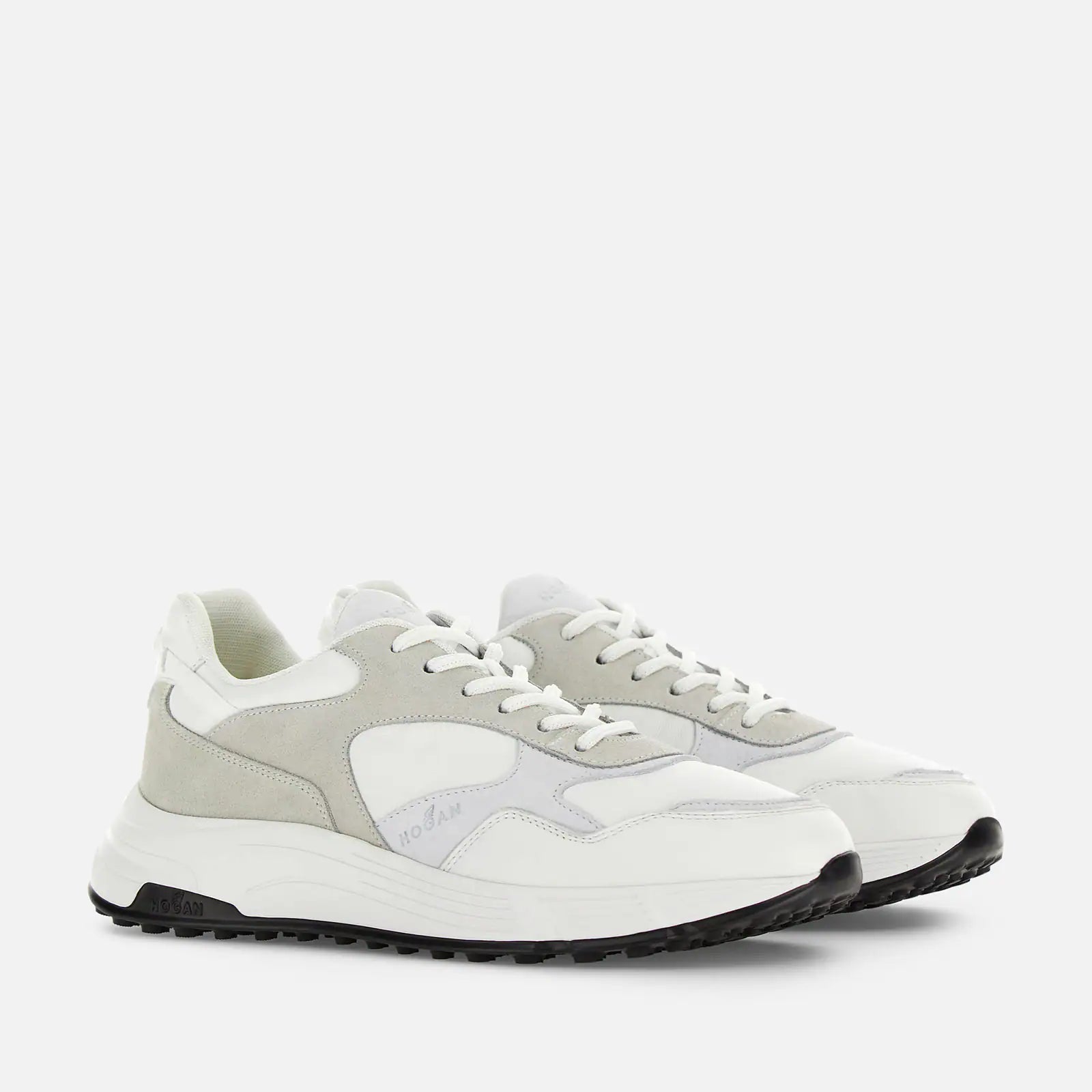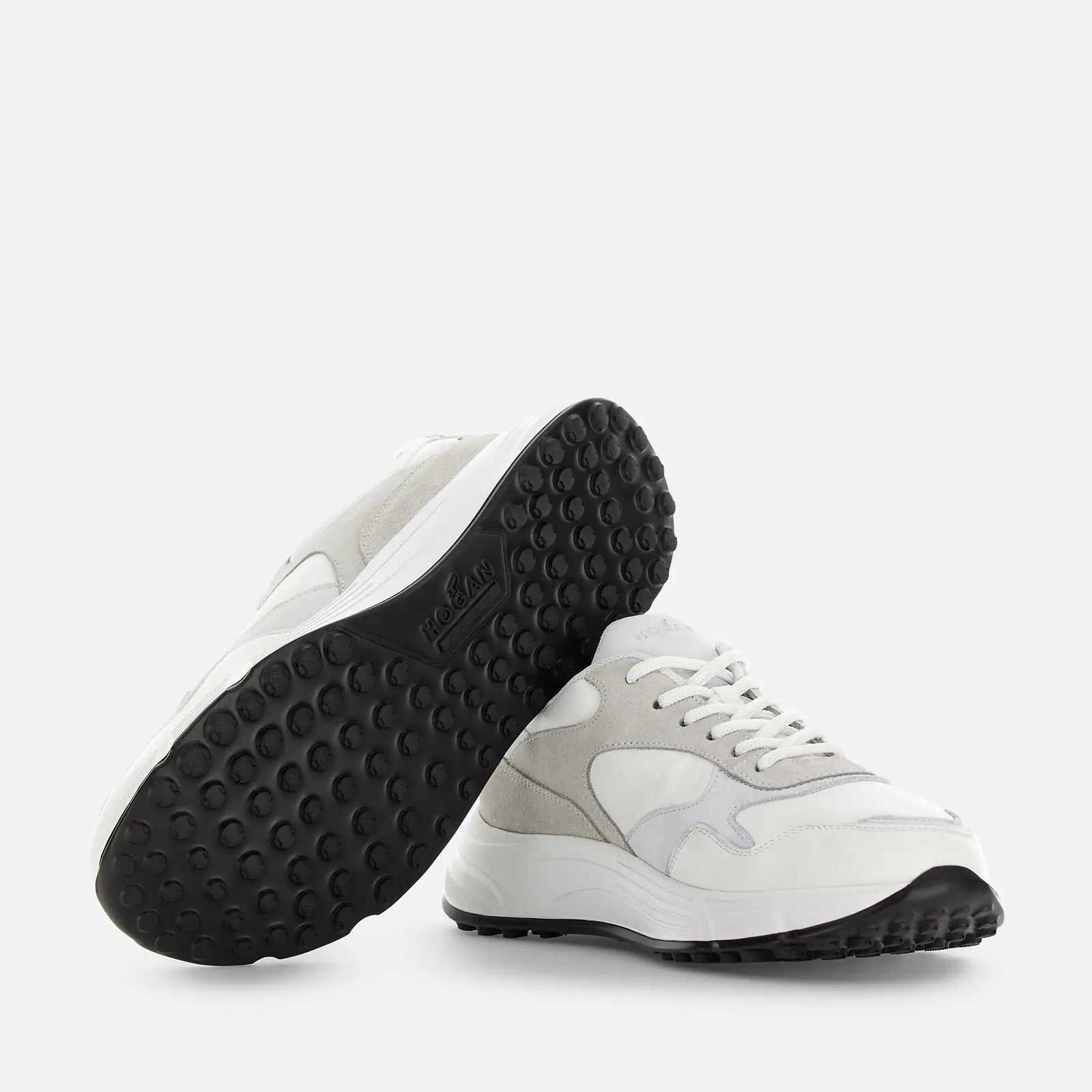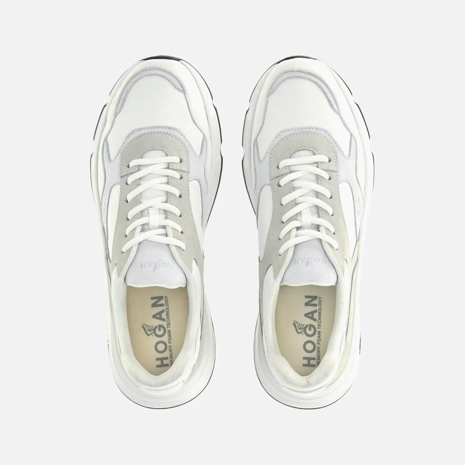 Characterized by smooth and dynamic forms, the Hogan Hyperlight sneakers combine the jogging shoe lines and urban features. The nubuck and smooth leather upper, with punched inserts and side H, recalls iconic details of the brand. An ultra dynamic style, with a memory foam insole and a lightweight outsole with spikes inspired by the historic H383 style.