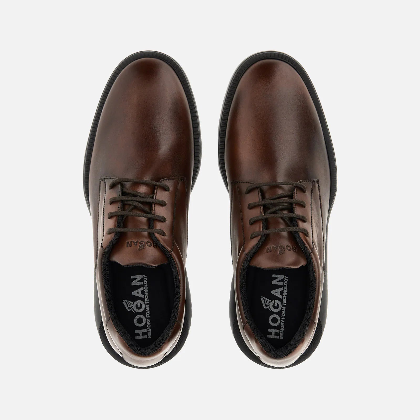 The perfect mix of metropolitan elegance and sportiness, these lace-ups meet the need for a formal style with the performance of a sneaker. The classic upper in brushed leather, with padded tongue, combines with the Interactive³ back. The super light EVA outsole, urban and sporty at once, reflects the dual nature of this new contemporary hybrid. The memory foam insole guarantees softness and comfort.