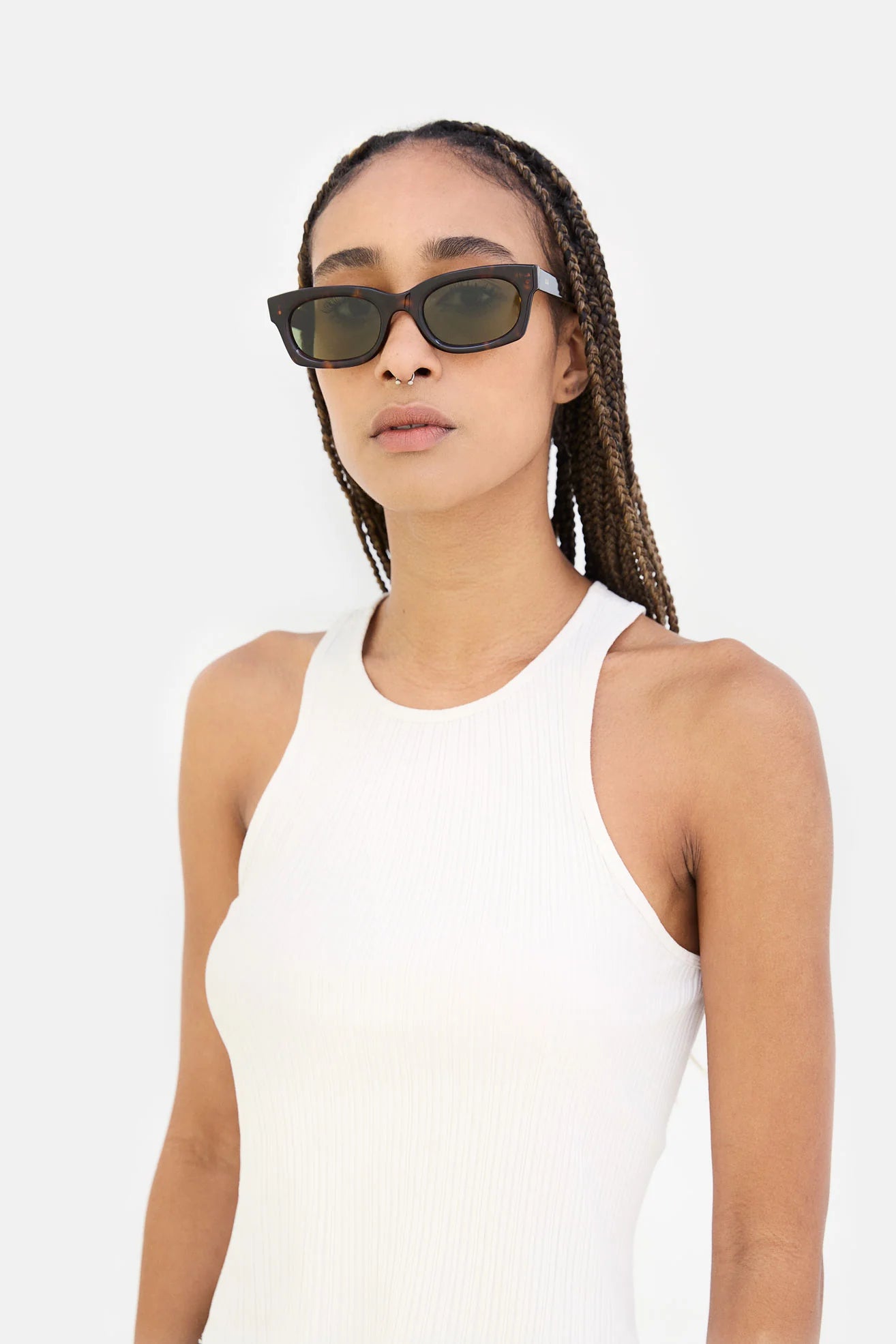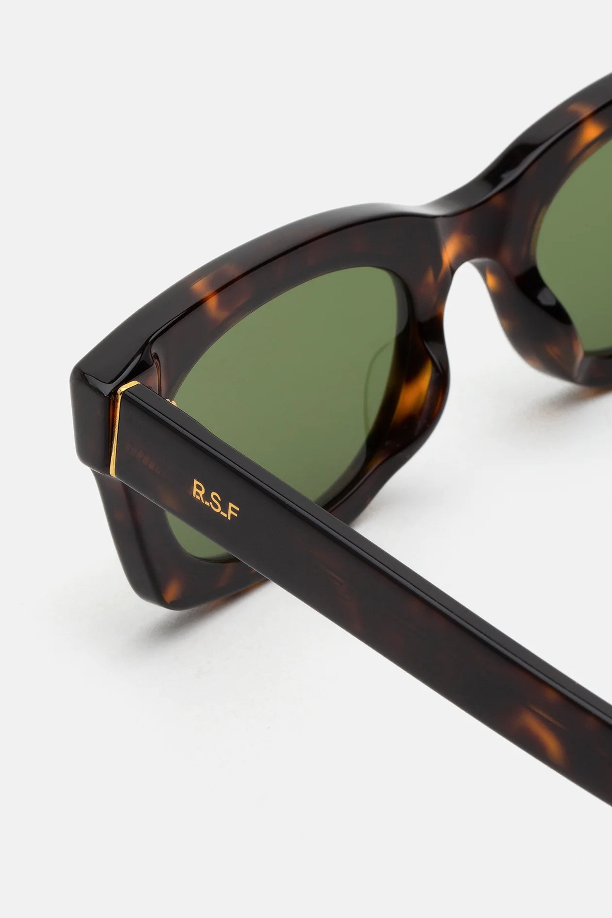 A fitted, elegant yet playful silhouette, Ambos is a modern classic. Designed as a modern twist of that unique 1950s everyday attitude. A relaxed yet determined shape, Ambos features smooth, rounded rims and oval lenses with sharp squared detailing. Its sturdy acetate has been chiseled for a polished, curvy feel, matched with ultra-sleek straight temples. This version of the Ambos comes in a dark 3627 Havana with bottle green lenses.
