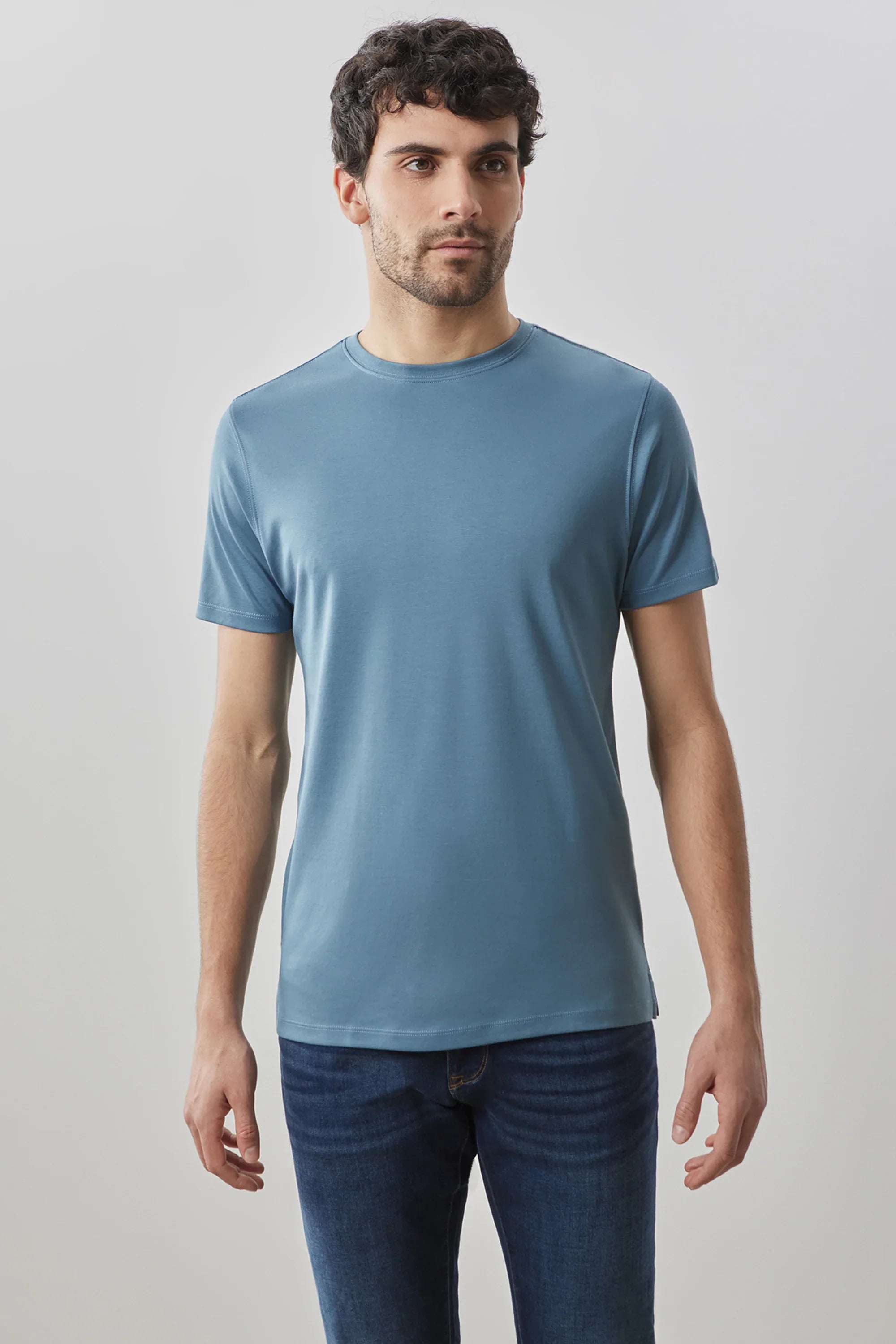 It doesn’t get more iconic than a T-shirt, and it doesn’t get better than The Barakett Tee! Also known as the Georgia Crew, our signature T-shirt is made with our exclusive USA-grown Pima Cotton and uses Soft Water finishing to create the ultimate in comfort, luxurious hand feel, and clean appearance. The best dressy T-shirt, it's great on its own or as a universal layering piece.