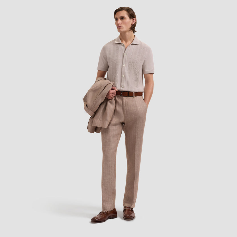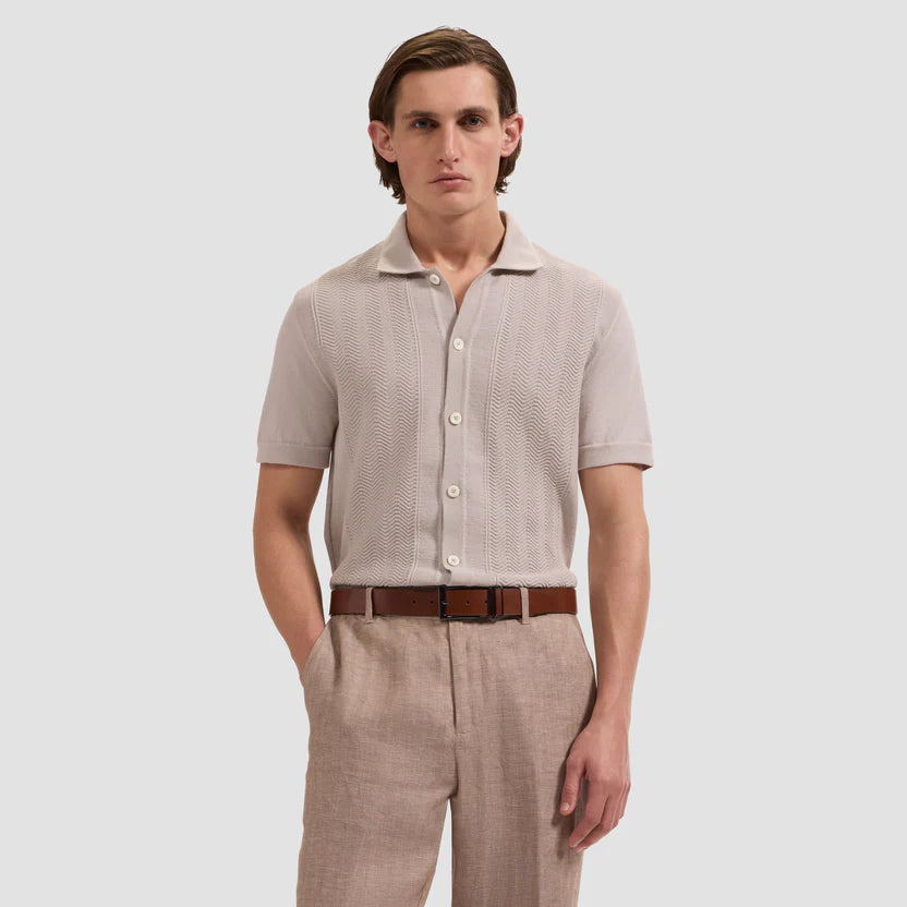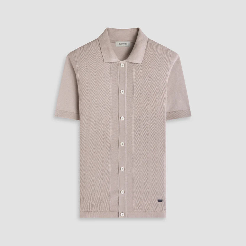 Crafted from 100% cotton, this short-sleeve polo sweater features an allover chevron knit pattern that adds rich texture and visual interest. Designed with a full button-front closure and genuine mother-of-pearl buttons, and finished with ribbed cuffs and hem, this lightweight sweater is perfect for polished casual occasions.