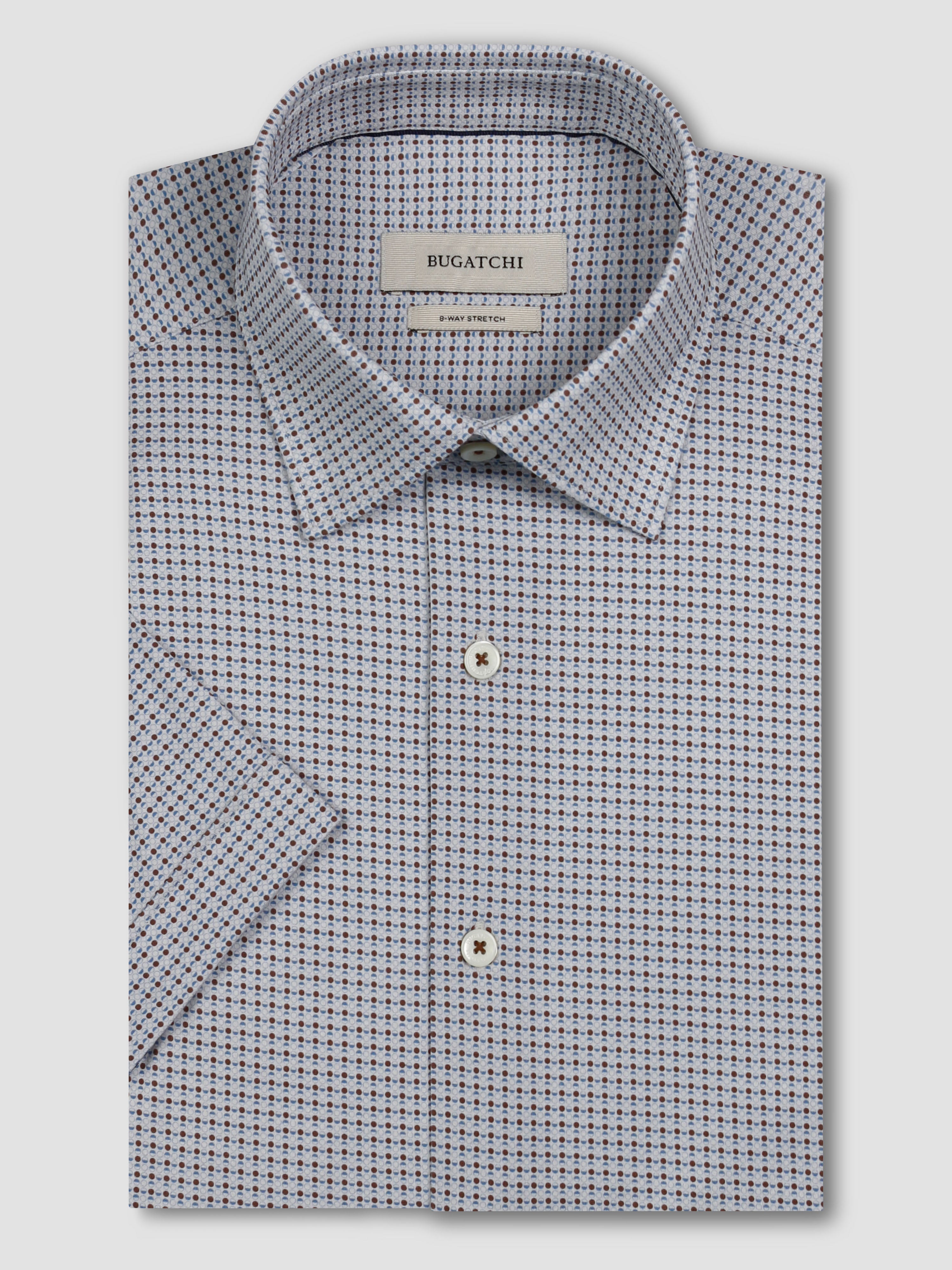 The Miles OoohCotton® short-sleeved shirt features a point collar, mother-of-pearl buttons, and a curved hem for a sleek tucked or untucked look. OoohCotton® is a performance, double-mercerized, wrinkle-resistant, breathable, and easy-care cotton blend with 8-way stretch, quick-dry, and thermal comfort properties.