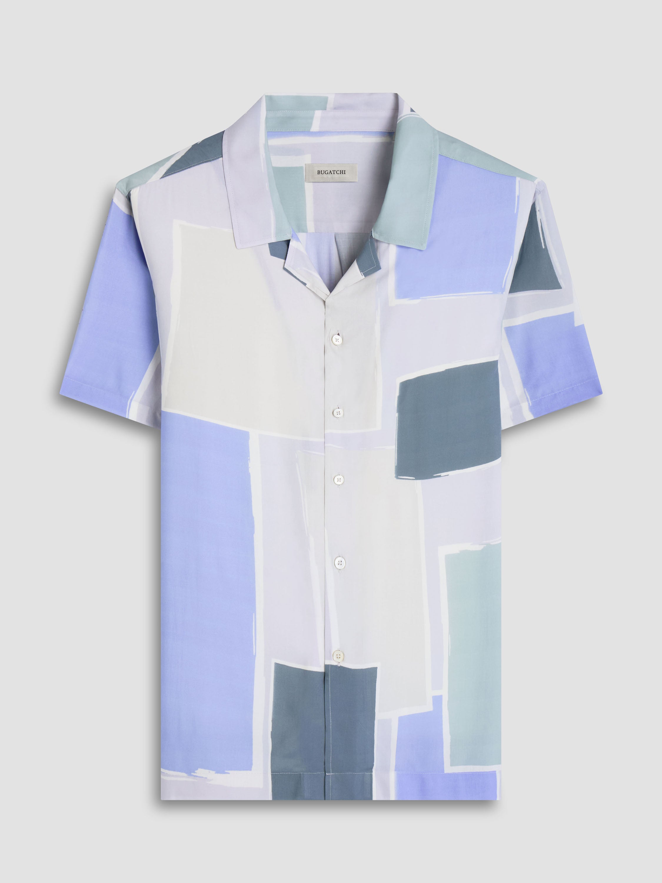 Bugatchi Jackson Color Block Short Sleeve Camp Shirt - Almond