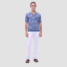 This short-sleeve Johnny collar polo, made in Italy from 100% organic cotton, combines sustainability with luxury craftsmanship. The design features a color-blocked pattern that adds visual interest, while a subtle textured knit provides depth. Its clean lines and structured collar offer a polished yet casual aesthetic, making it versatile for both everyday wear and more refined occasions. Breathable and comfortable, it embodies modern Italian design.