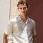 The Jackson short-sleeve camp collar shirt in leaf print is crafted from 100% Tencel, a premium eco-friendly lyocell fabric known for its soft drape and natural breathability. It features mother-of-pearl buttons and a straight hem that adds a clean finish, making it perfect for both laid-back and more polished looks. A versatile addition to any wardrobe for warm-weather days and beyond, and exceptional comfort without compromise.