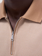Bugatchi Micro Check Quarter-Zip Polo - Camel