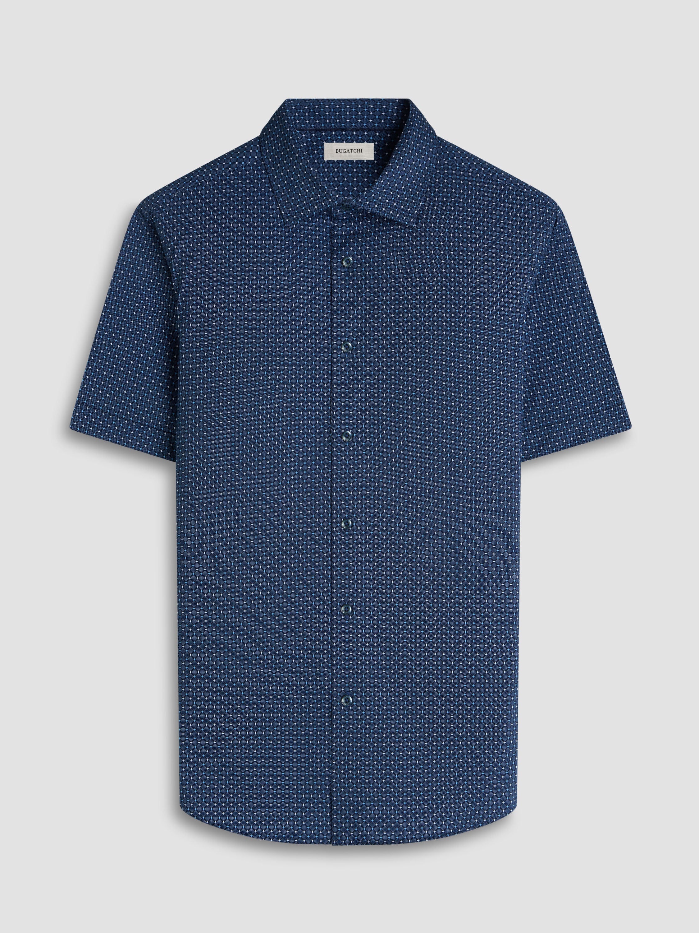 Bugatchi Miles Diamond Check OoohCotton Short-Sleeve Shirt - Navy